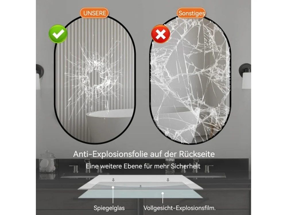 Miroir de salle de bain elliptique 50×80 cm à fixation flexible