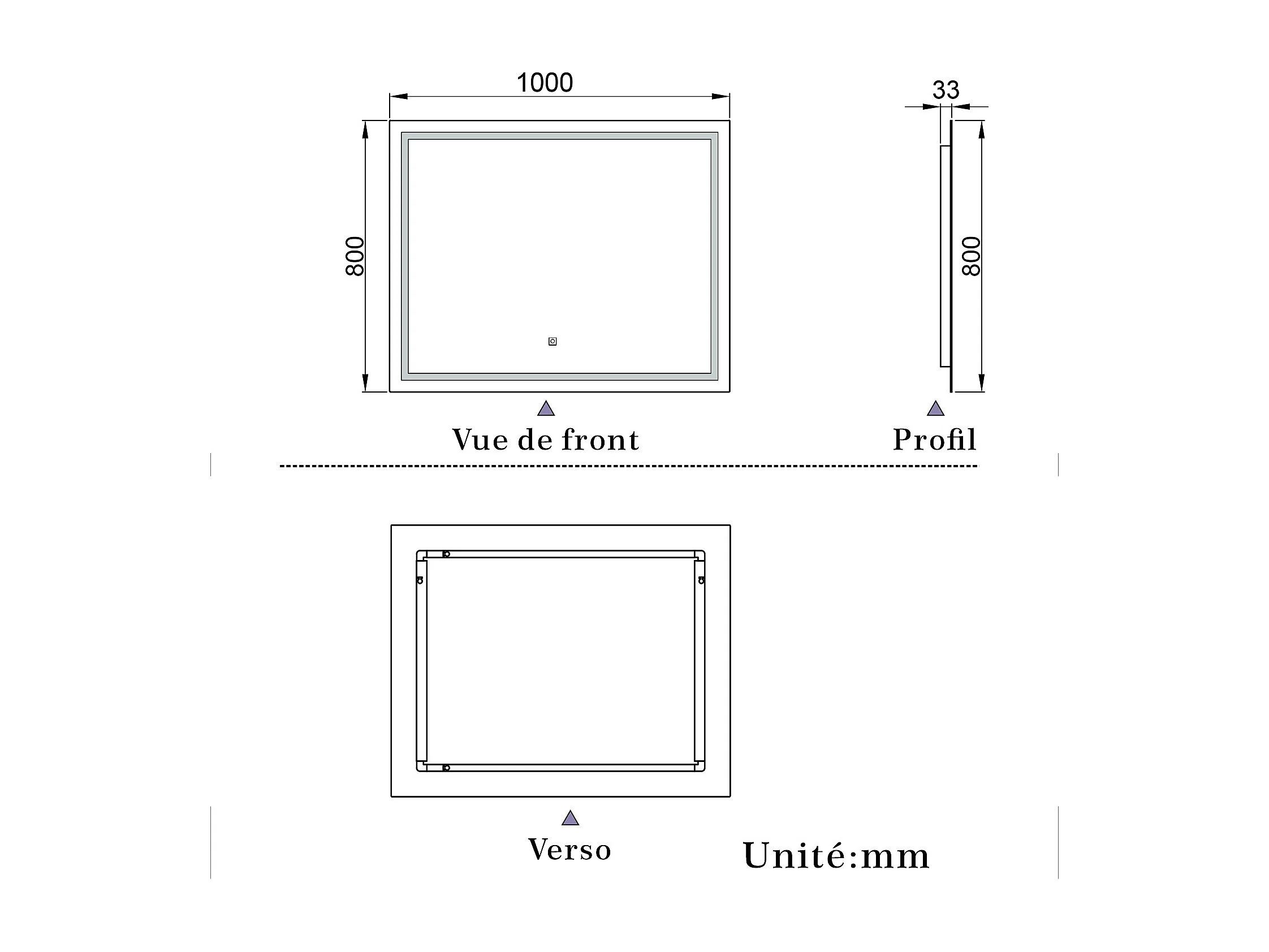 Miroir de salle de bain lumineux L.100 x H.80 cm avec Dimmable + Mémoire + D'arrêt automatique, Miroir LED Mural
