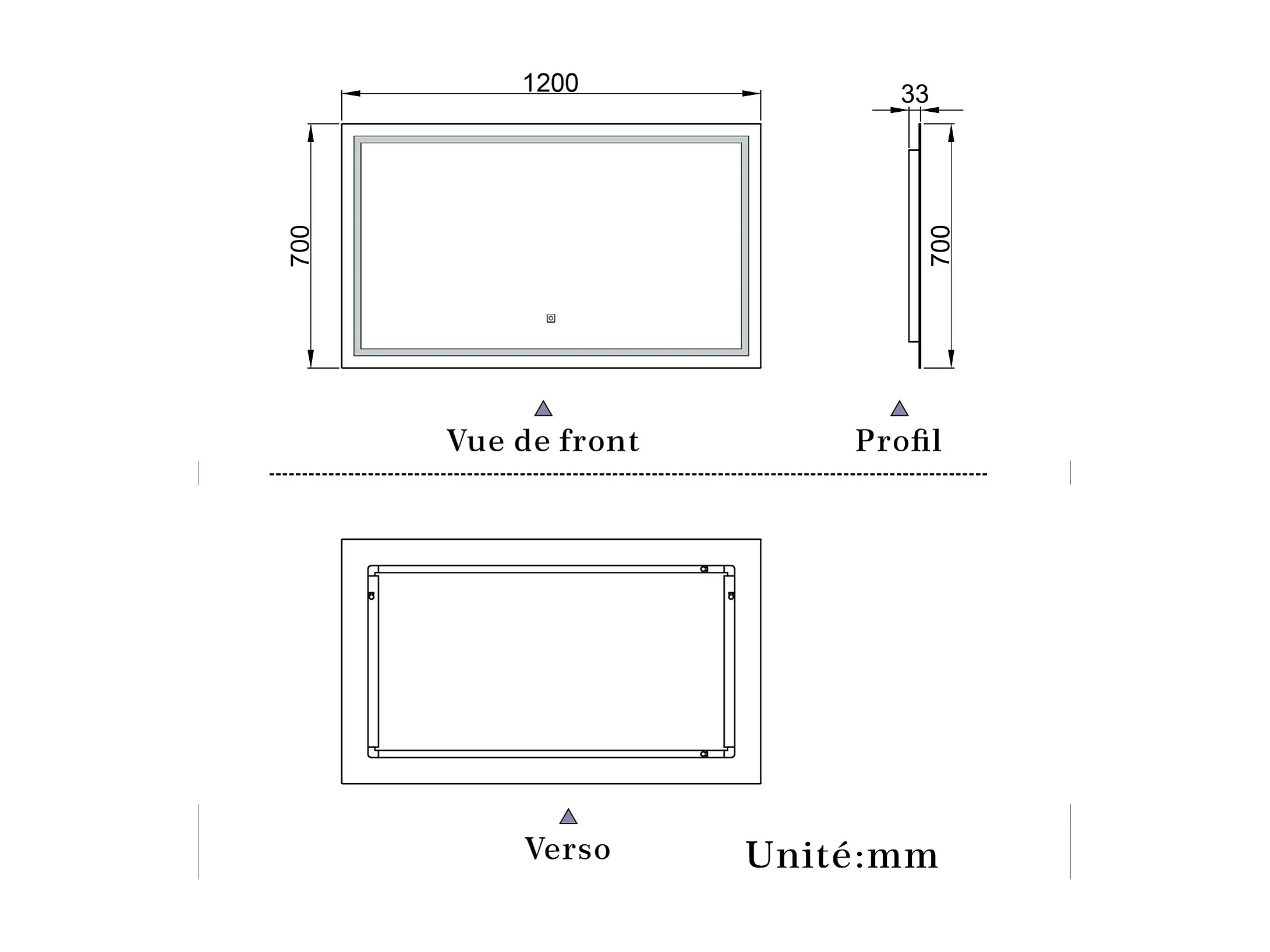 Miroir de salle de bain lumineux L.120 x H.80 cm avec Anti-Buée + 3 Couleurs + Dimmable, Miroir LED Mural