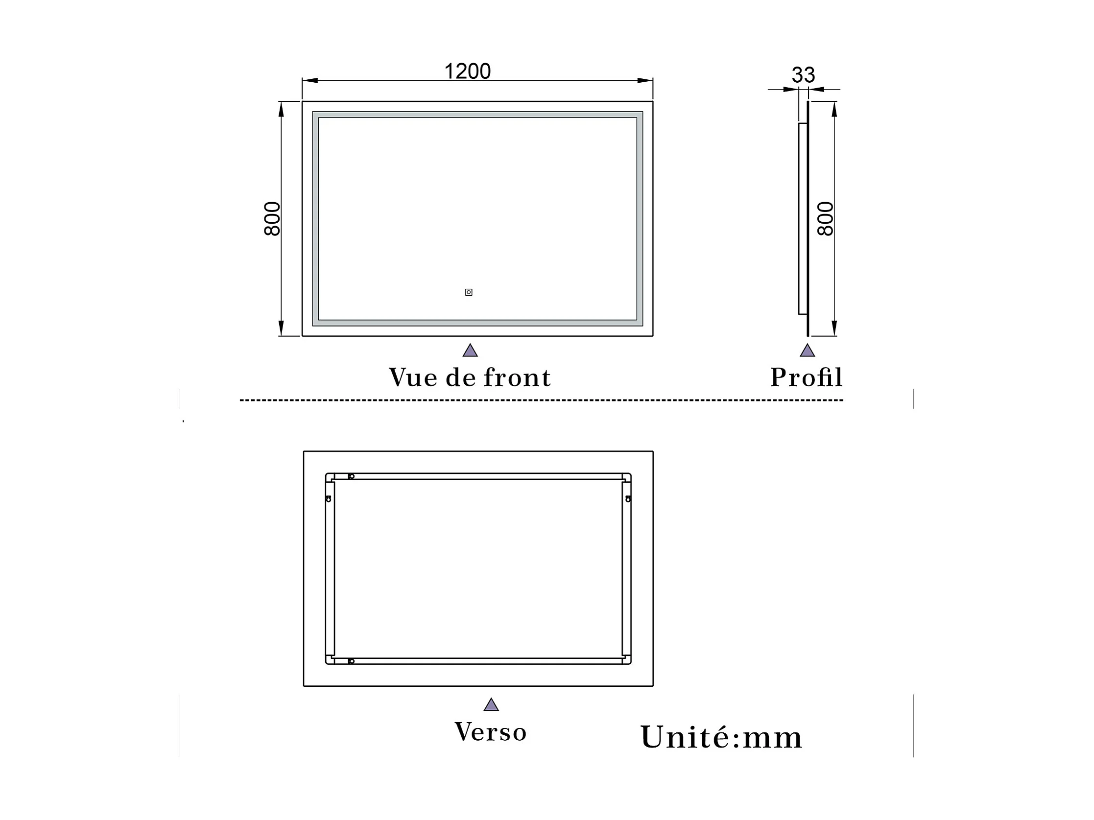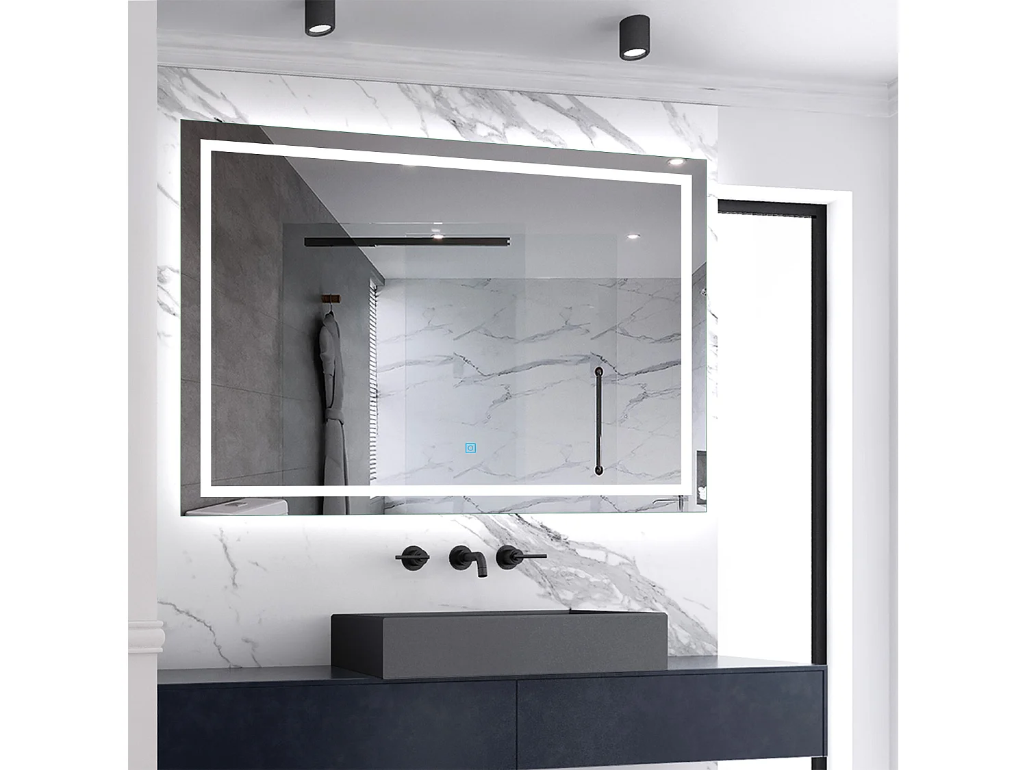 Miroir de salle de bain lumineux L.120 x H.80 cm avec Anti-Buée + 3 Couleurs + Dimmable, Miroir LED Mural