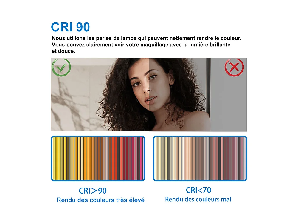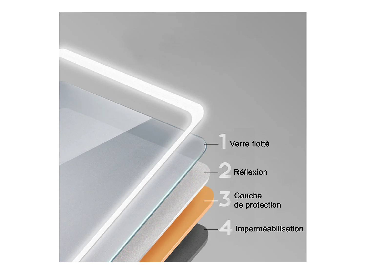 Miroir de salle de bain lumineux l.120 x H.80cm avec Anti-buée, Mural Miroir - Aica