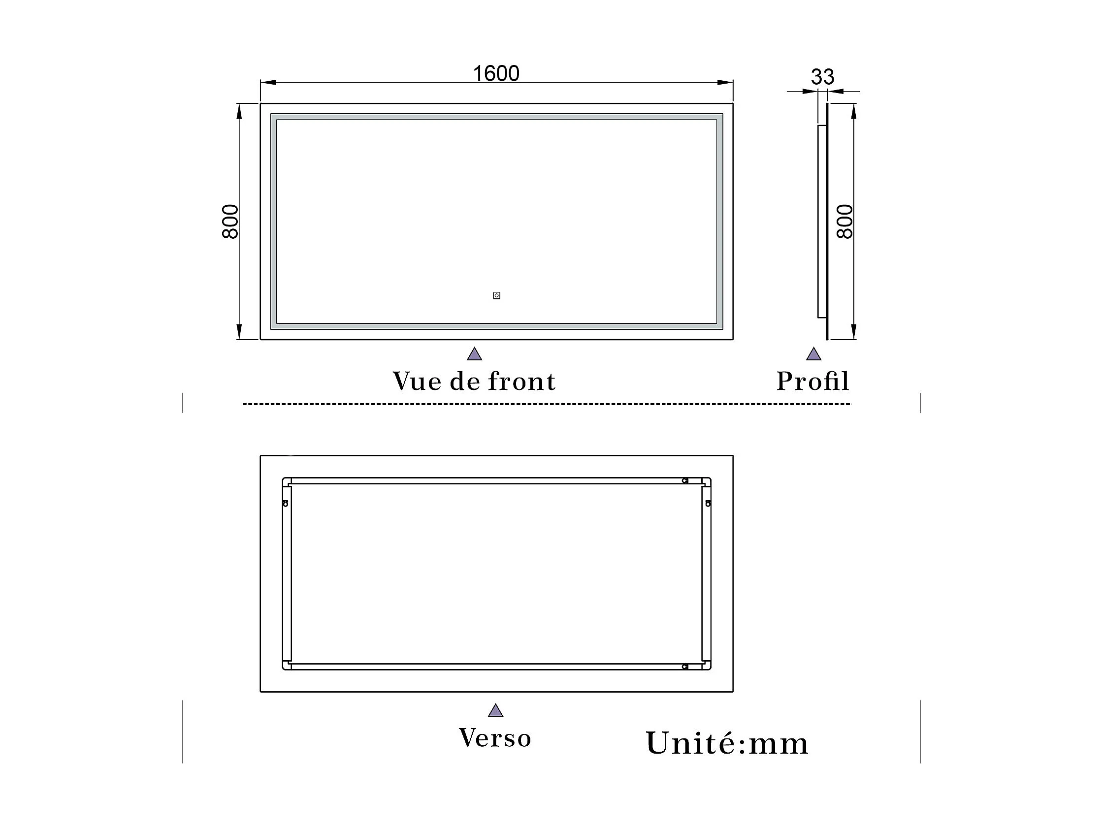 Miroir de salle de bain lumineux L.160 x H.80 cm avec Anti-Buée + 3 Couleurs + Dimmable, Miroir LED Mural