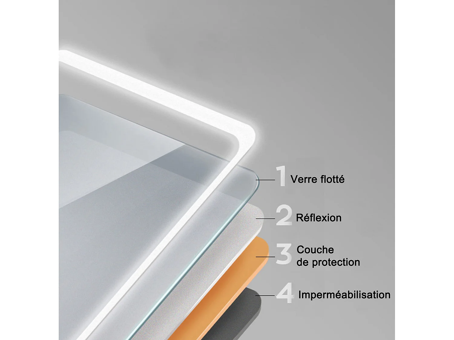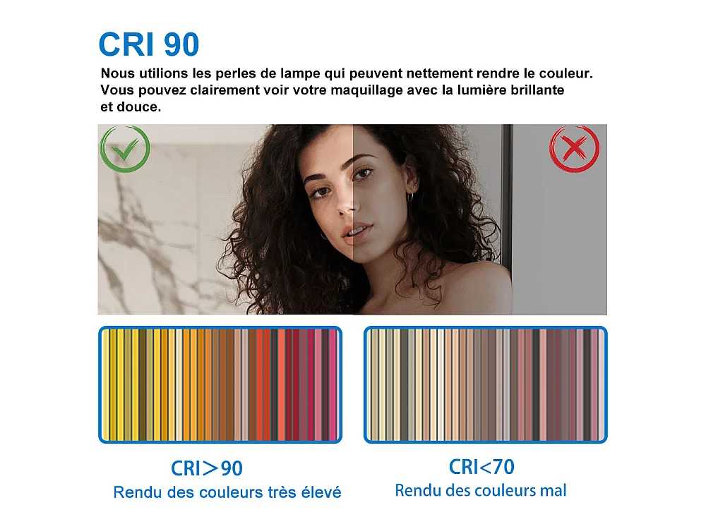 Miroir de salle de bain lumineux l.160 x H.80cm avec Anti-buée, Mural Miroir - Aica