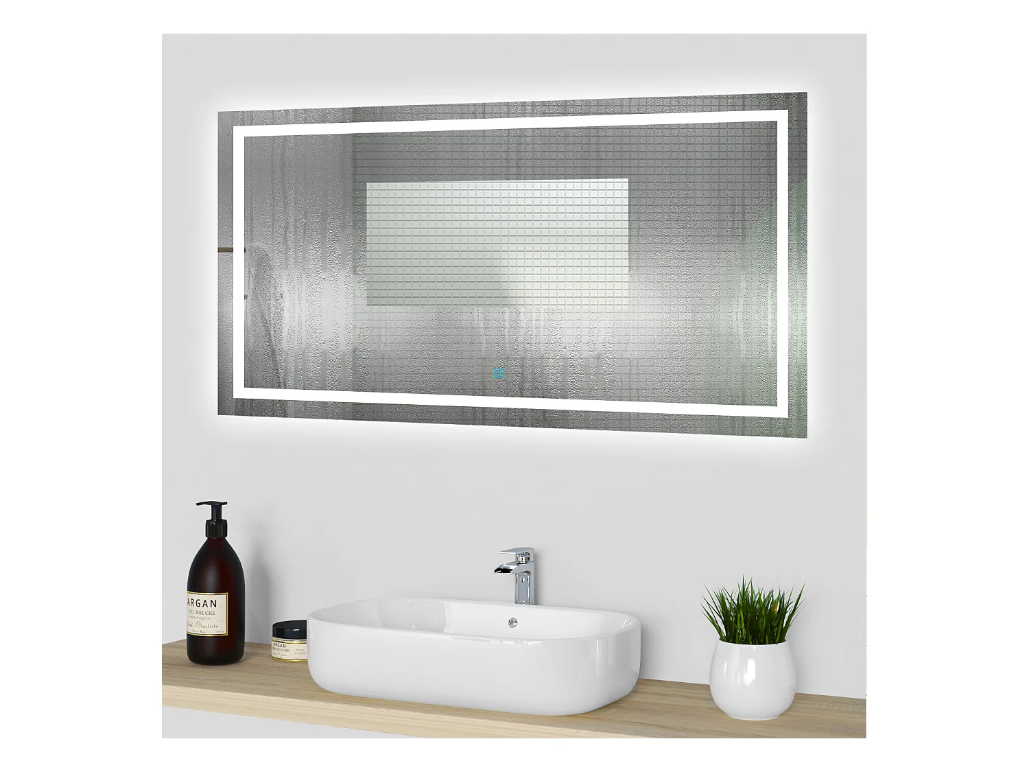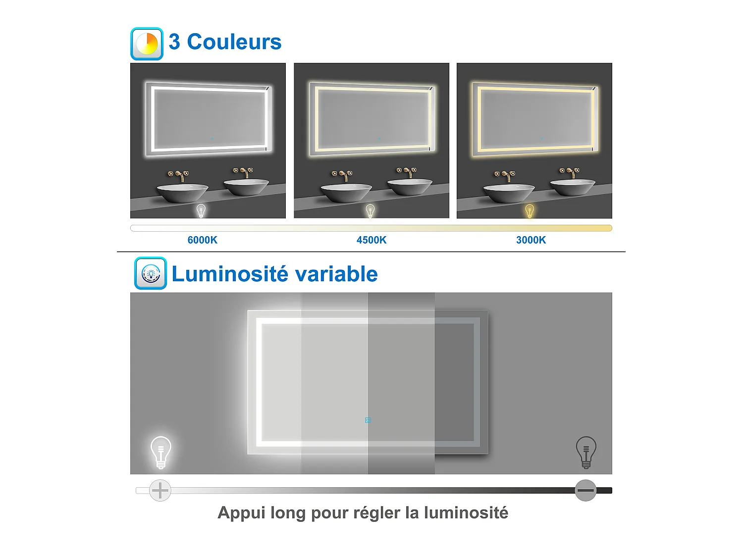 Miroir de salle de bain lumineux l.80 x H.60cm avec Anti-buée + 3 Couleurs + Dimmable, Mural Miroir lumineux