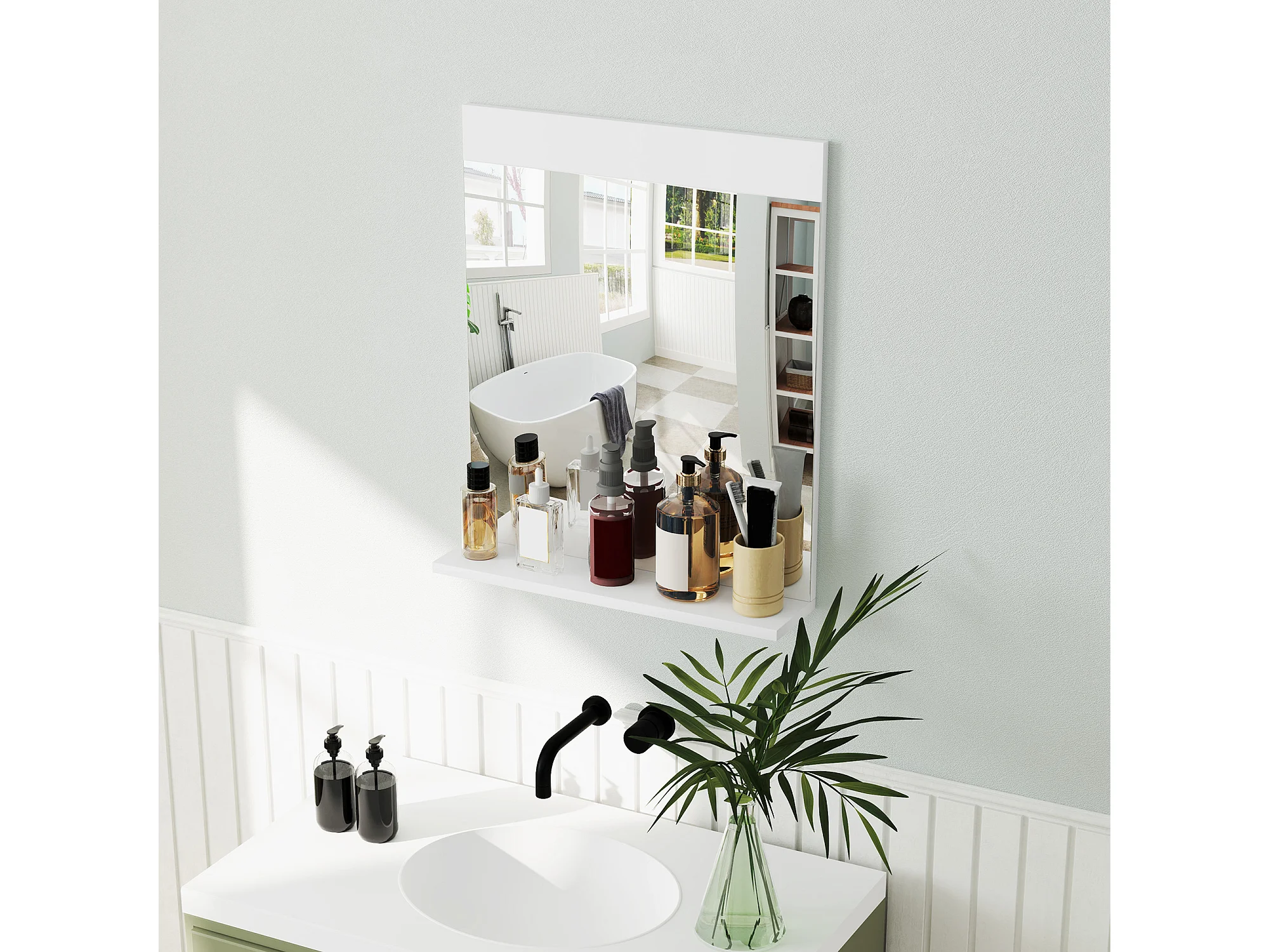 Miroir de salle de bain mural avec étagère intégrée - dim. 50 x 12 x 60 cm - blanc