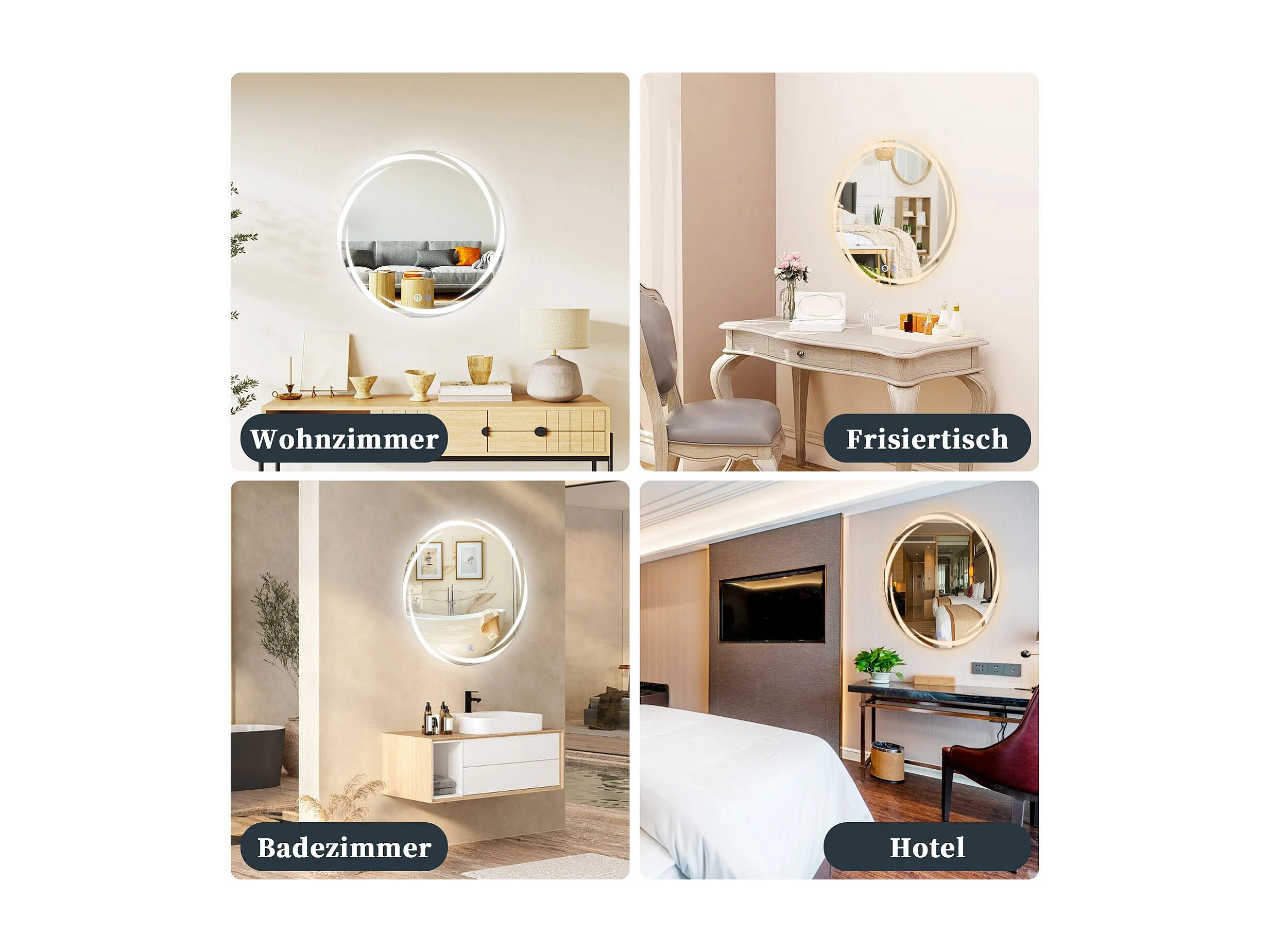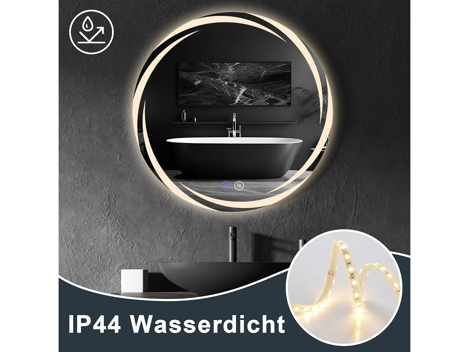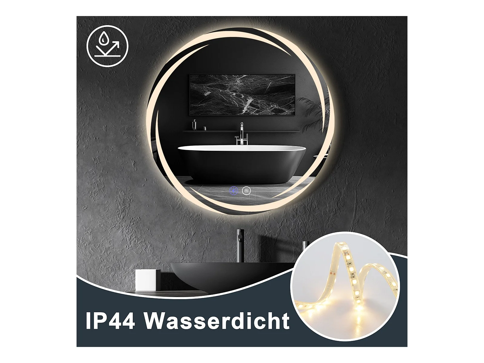 Miroir de salle de bain NETTLIFE avec éclairage, miroir de salle de bain rond à LED, miroir de salle de bain rond IP44 de 80 cm avec fonction tactile
