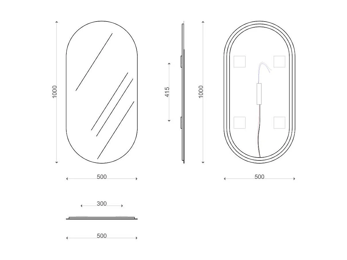 Miroir De Salle De Bain Ovale 50X100 Réversible Rétro-Éclairé À Led