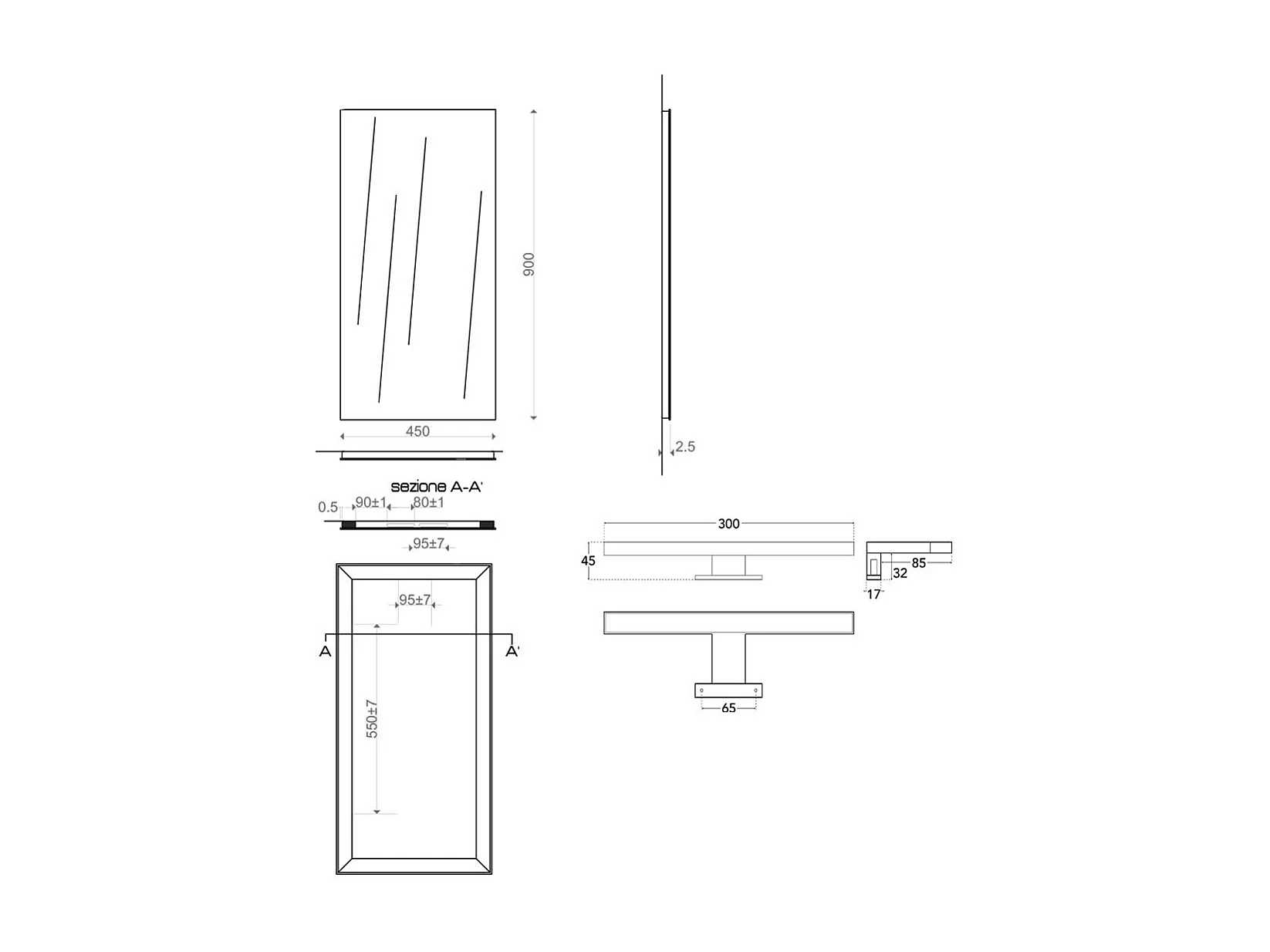 Miroir De Salle De Bain Simple Avec Éclairage De 45 Cm X 90 Cm