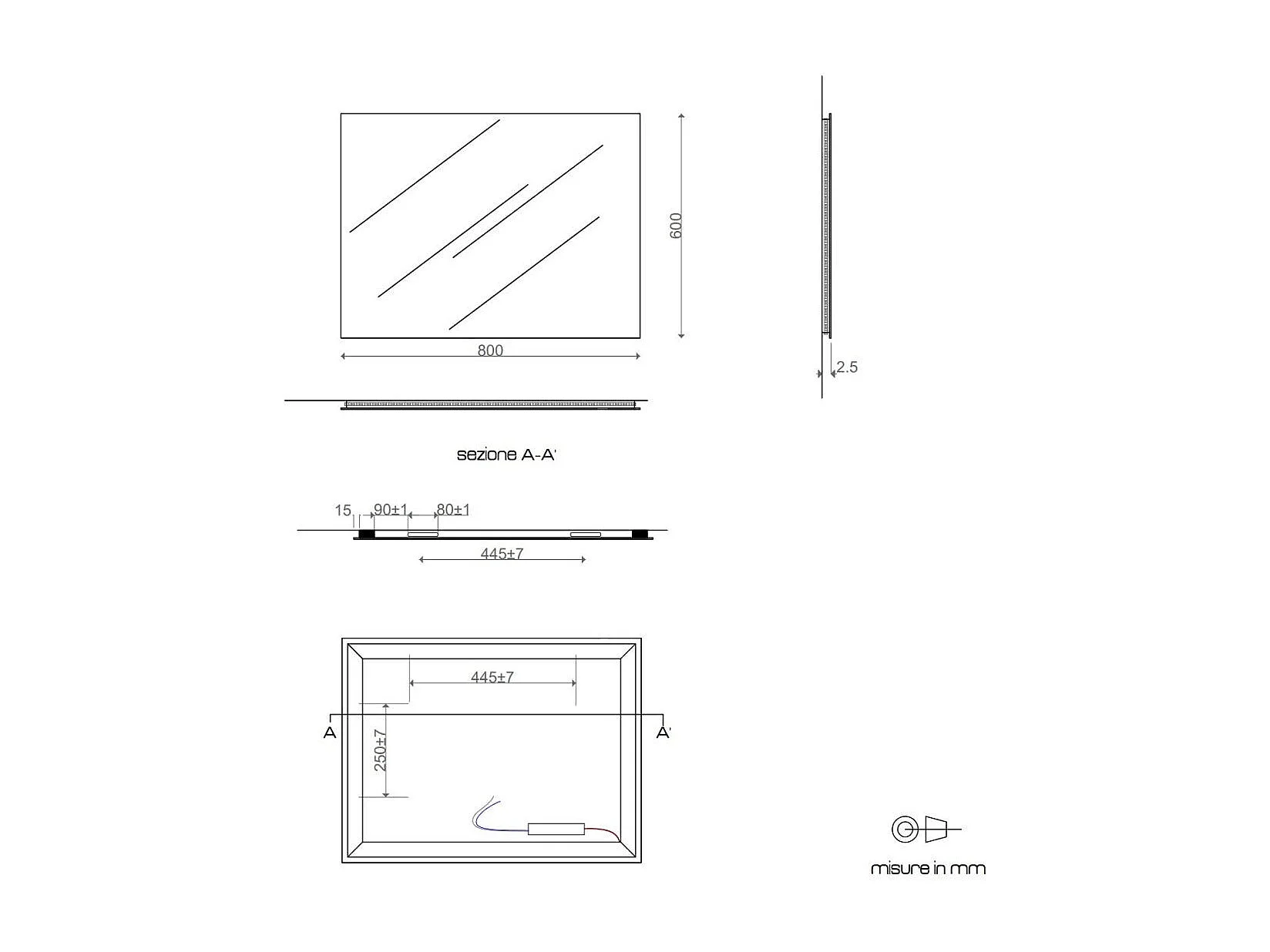 Miroir De Salle De Bain Avec Led Cm 80X60 Réversible Avec Senseur Touch