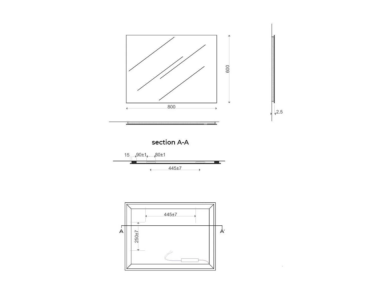 Miroir De Salle De Bains 60X80 Cm Avec Éclairage Perimétrique Led