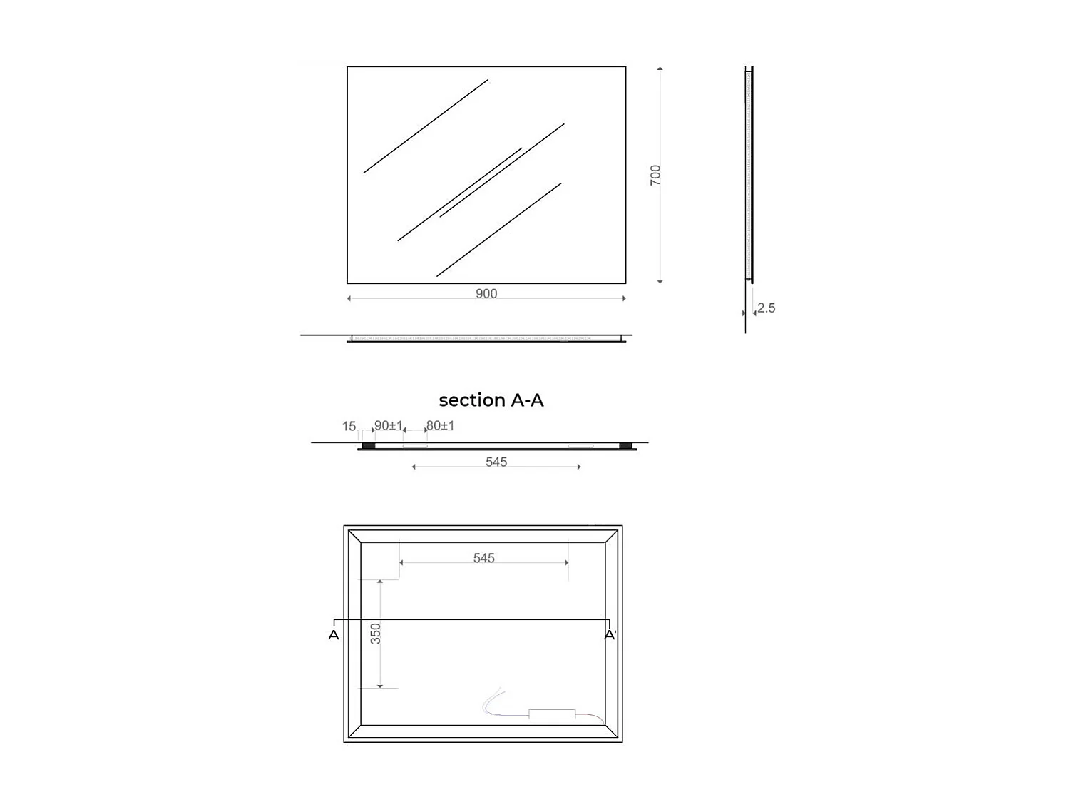 Miroir De Salle De Bains 90X70 Cm Éclairage À Leds