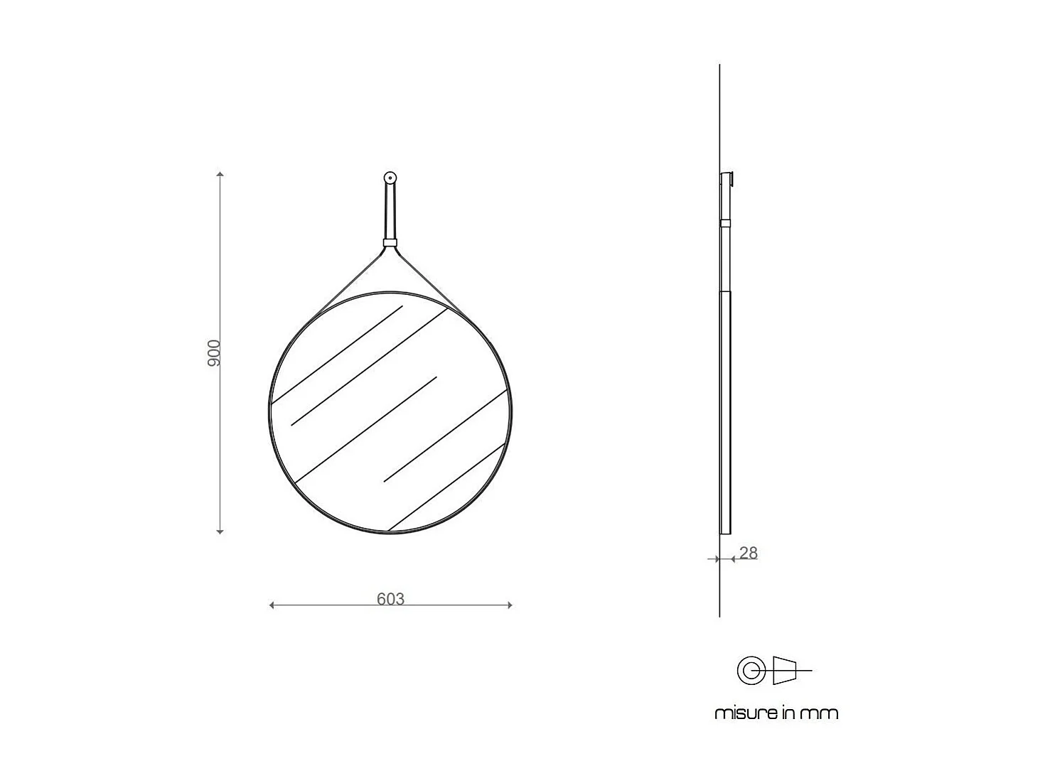 Miroir De Salle De Bains Design Et Rond Avec Cadre En Cuir Noir