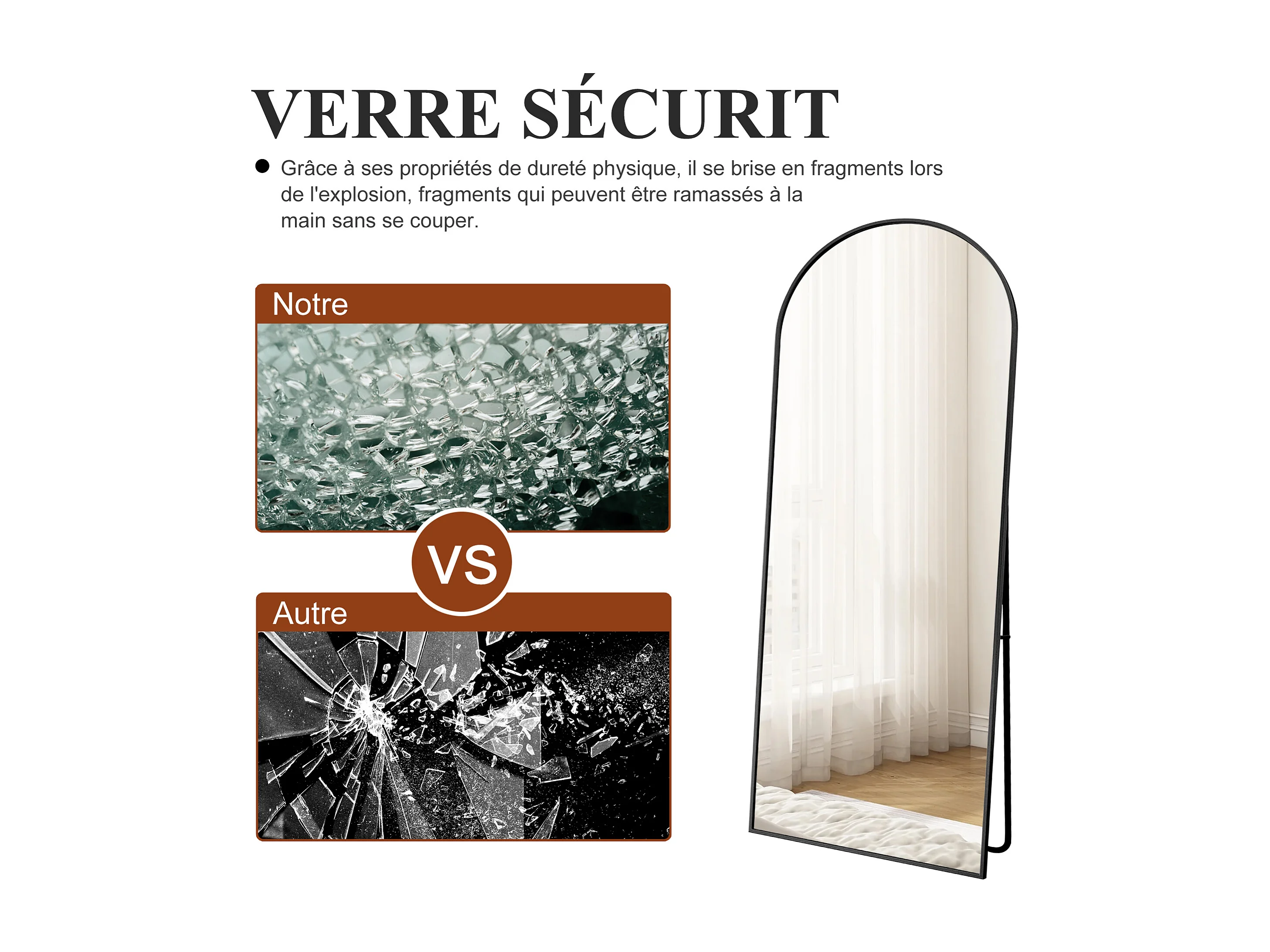 Miroir debout arqué 164×54 cm avec cadre noir – Design élégant et vintage, polyvalent (accrocher ou poser)