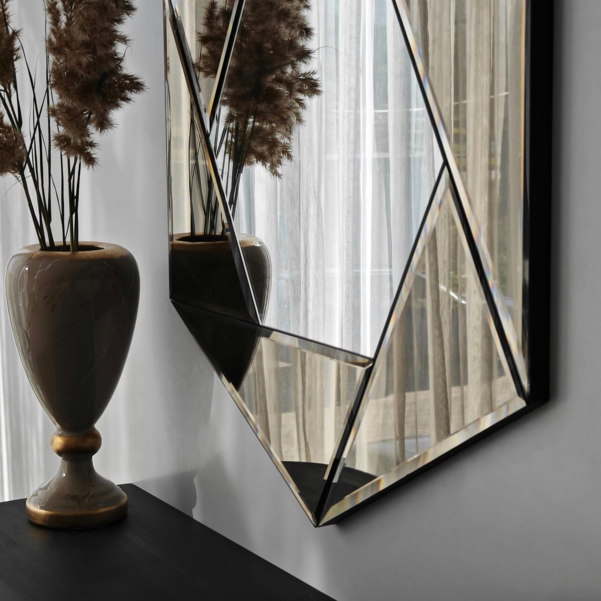 Miroir d'entrée hexagonal à facettes, cadre ambré CODY