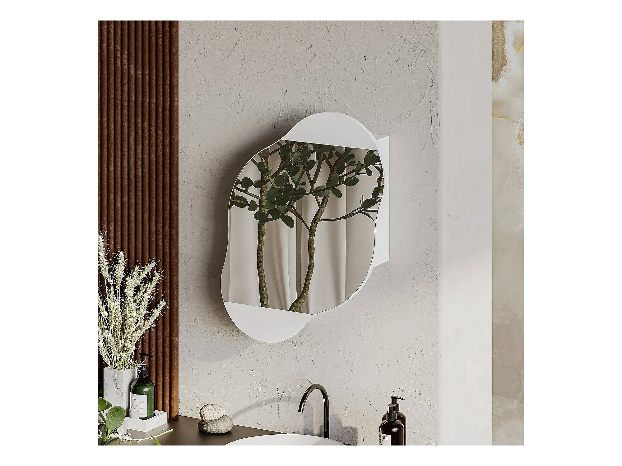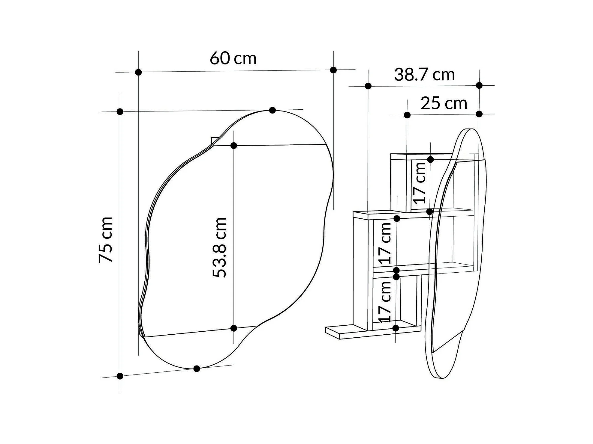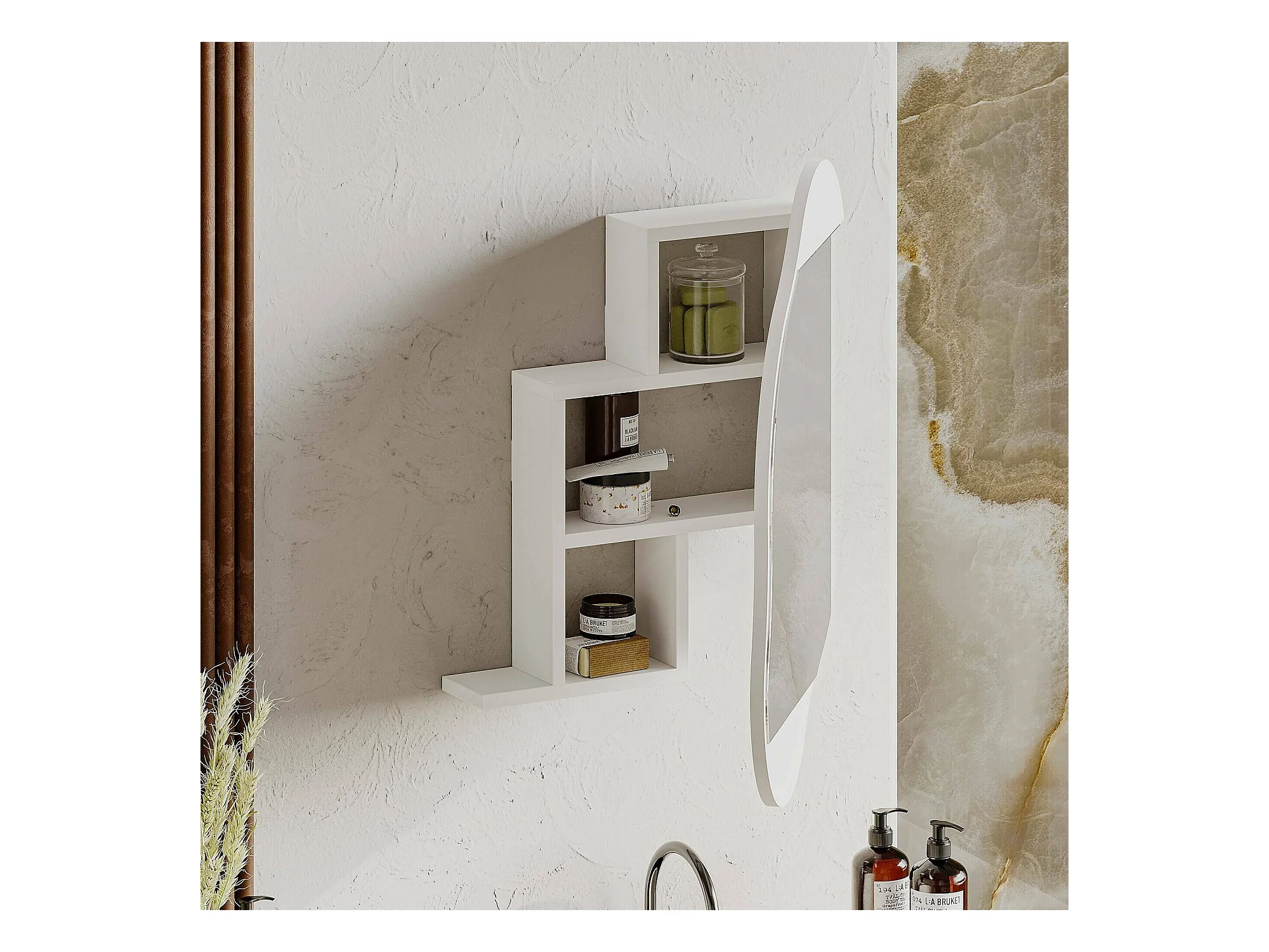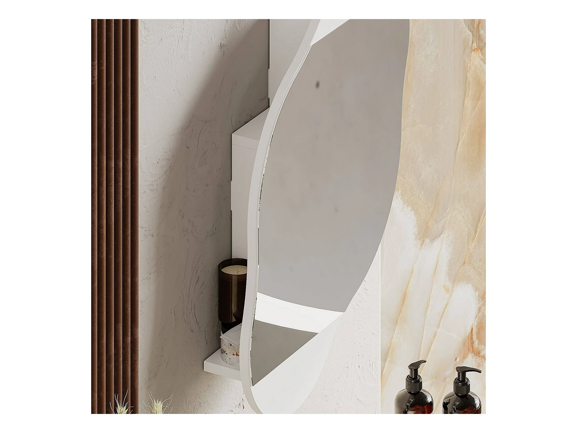 Miroir Dmontevag, Verre miroité, Objet d'ameublement mural, Décoration avec miroir, 60x13 h75 cm, Blanc