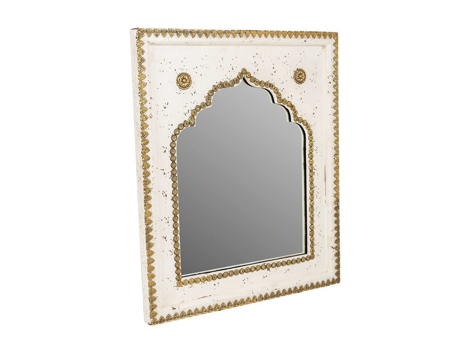 Miroir mural XI'an 80 x 76 cm rectangulaire naturel blanc cadre en bois de manguier massif laqué décoration chambre accesoire salle de bain maquillage