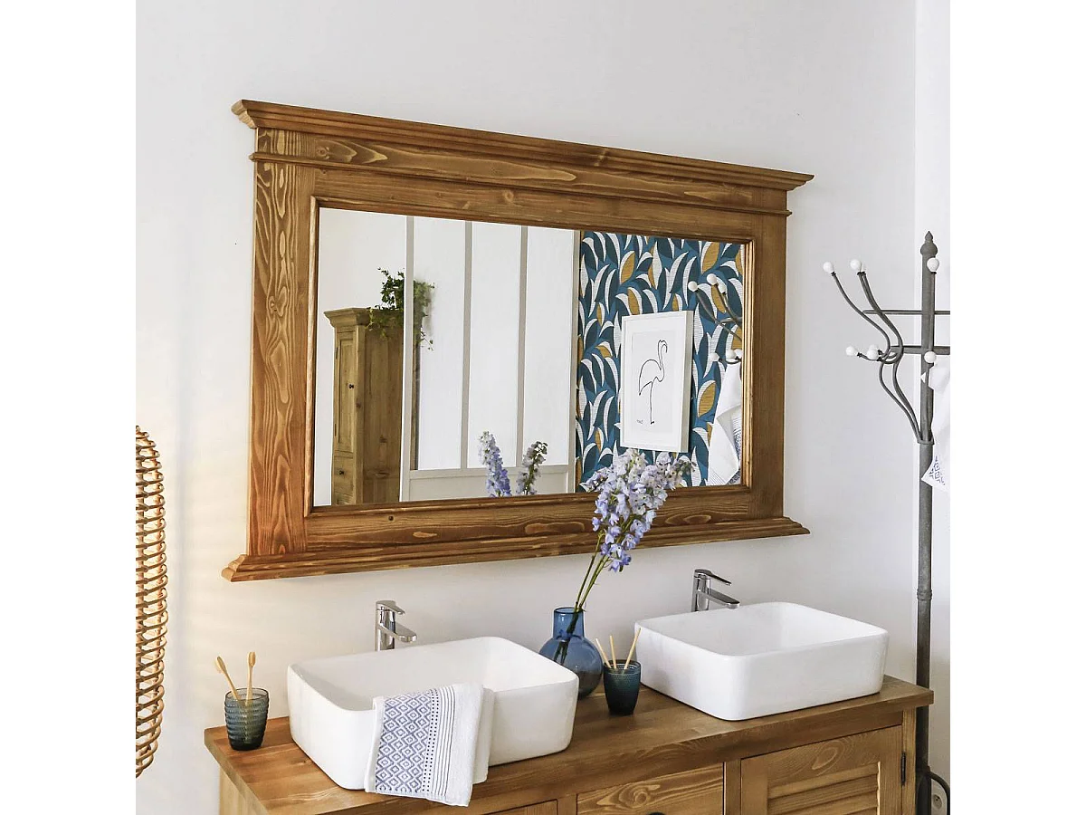 Miroir en bois de pin ciré miel Manel