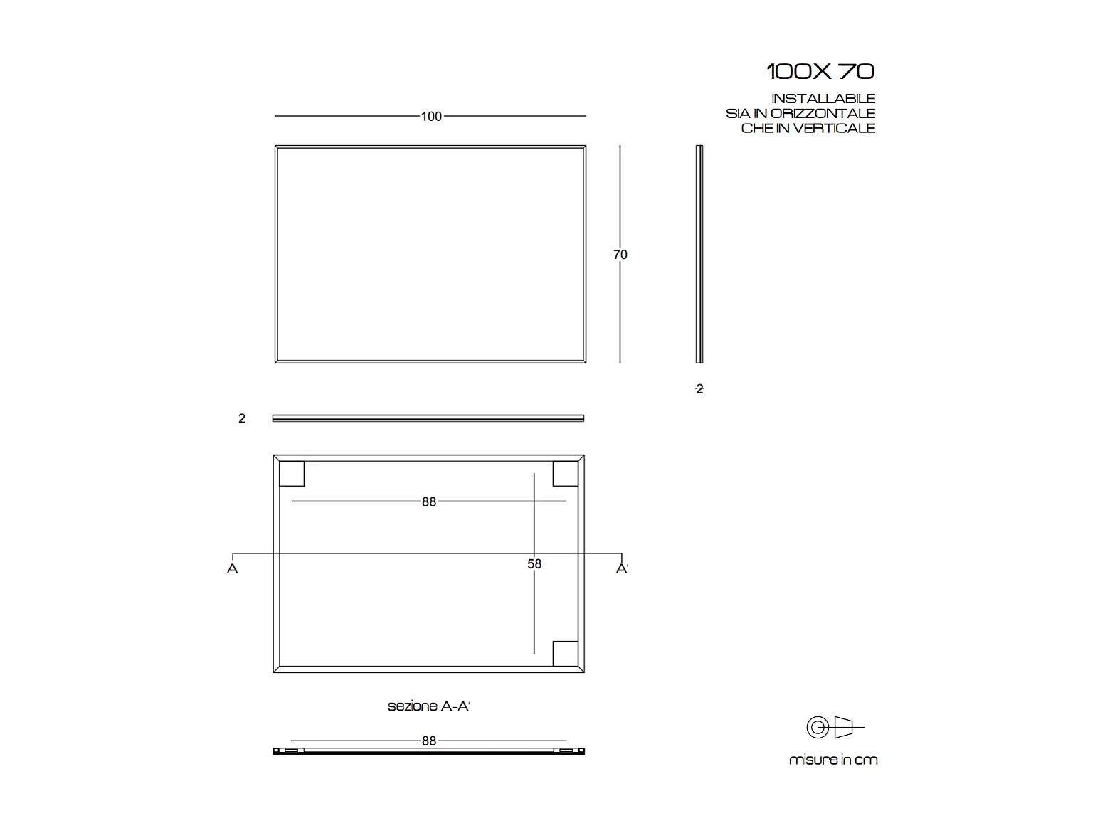 Miroir En Fil De Fer Poli 100X70 Réversible Avec Bordure Noire Mate