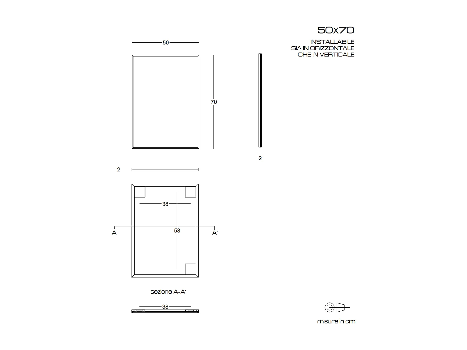 Miroir En Fil De Fer Poli 50X70 Réversible Avec Bordure Noire Mate