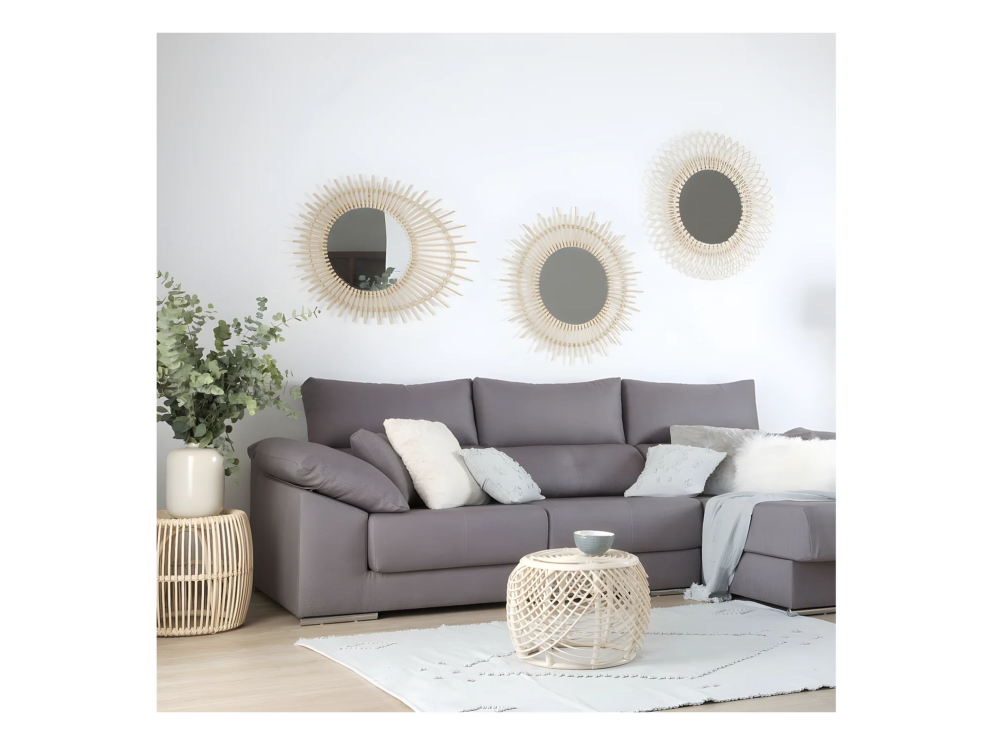 WELL HOME - Miroir soleil en rotin design effilé à l'extérieur Ø50cm