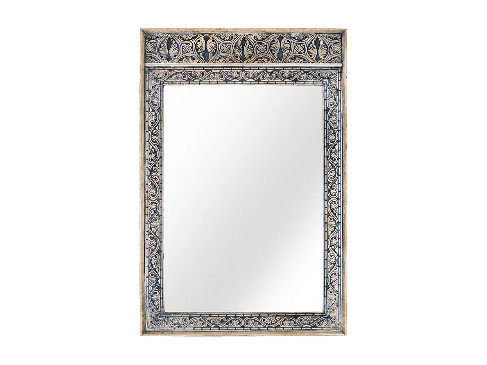 Miroir encadré de bois de manguier massif sculpté à la main