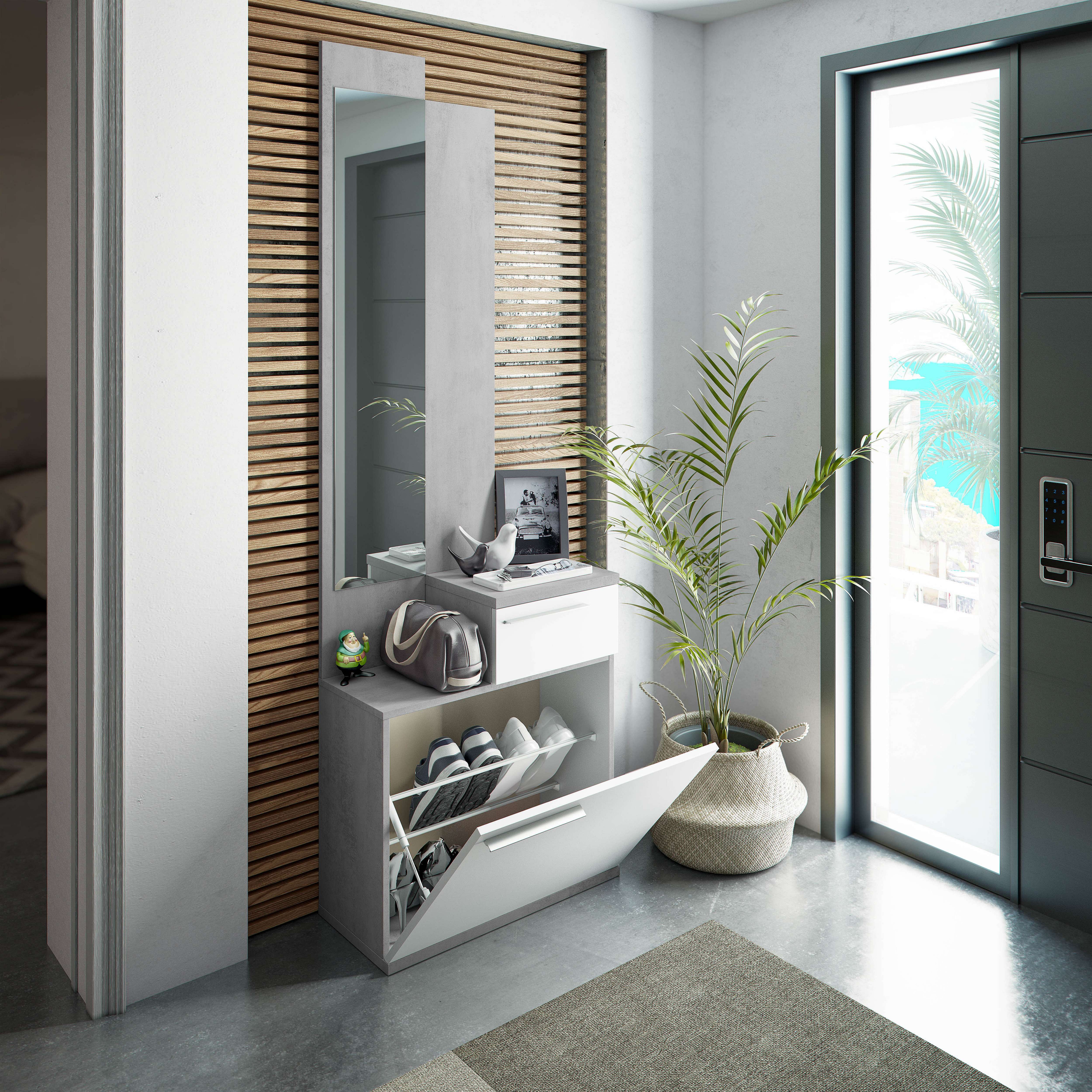 Miroir et étagère à chaussures en ciment Karen White Artik 61x185x28 cm