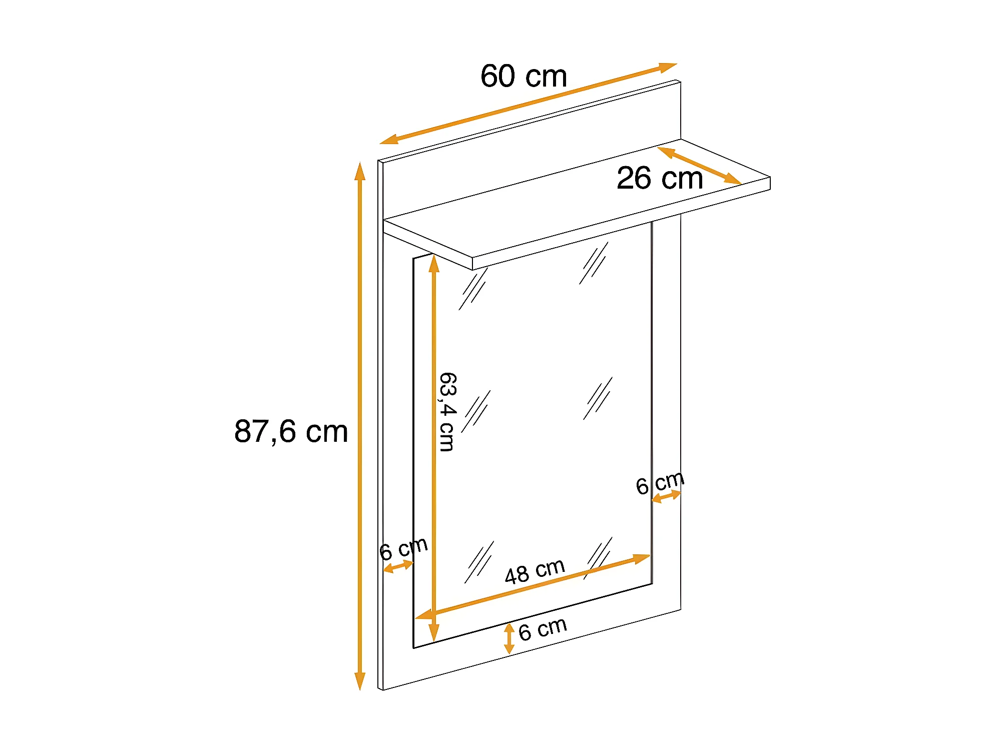 Miroir Étagère en Bois "Gustavo" 88cm Naturel