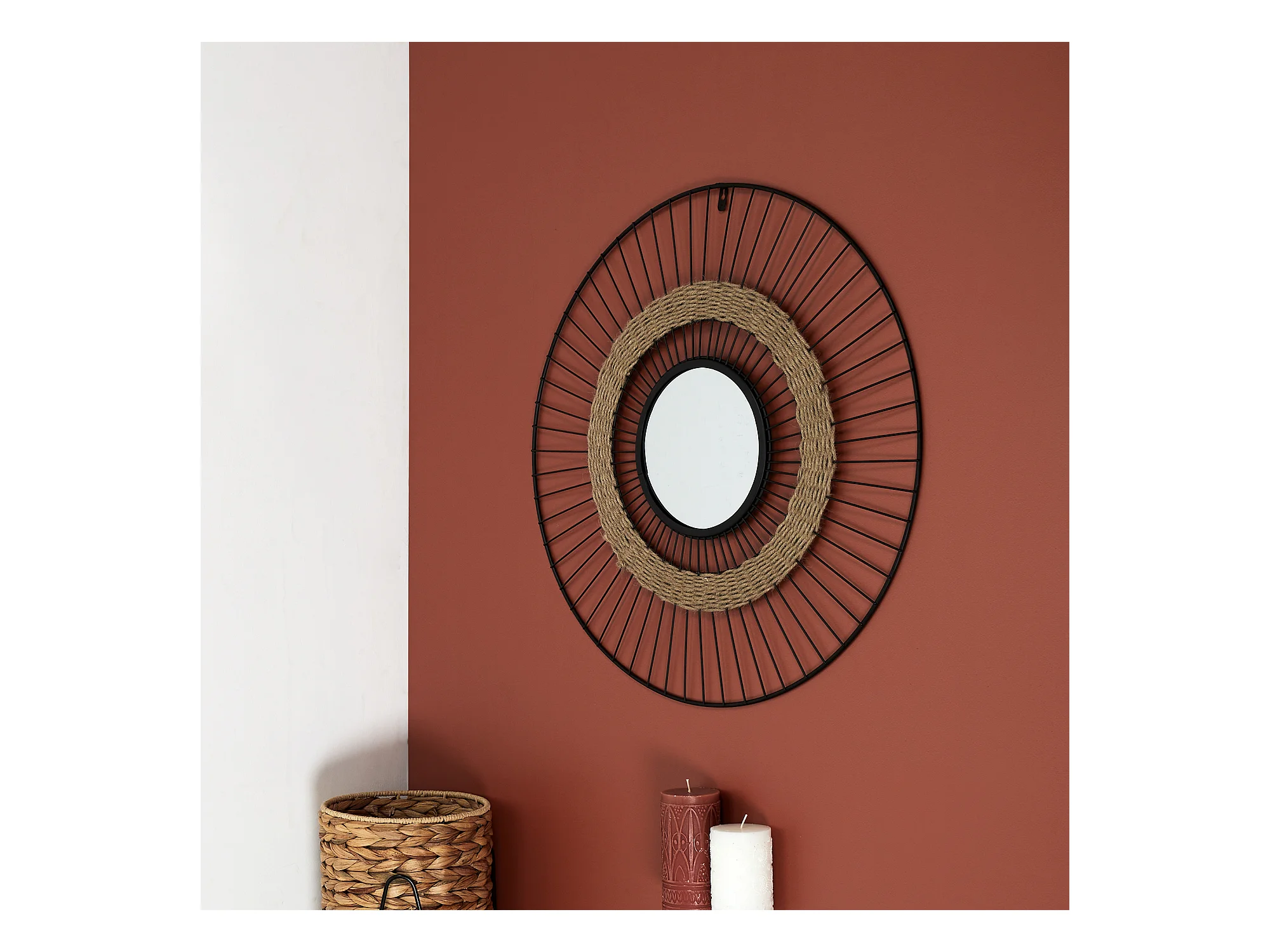 Miroir Filaire Et Jonc 60cm Noir, Beige