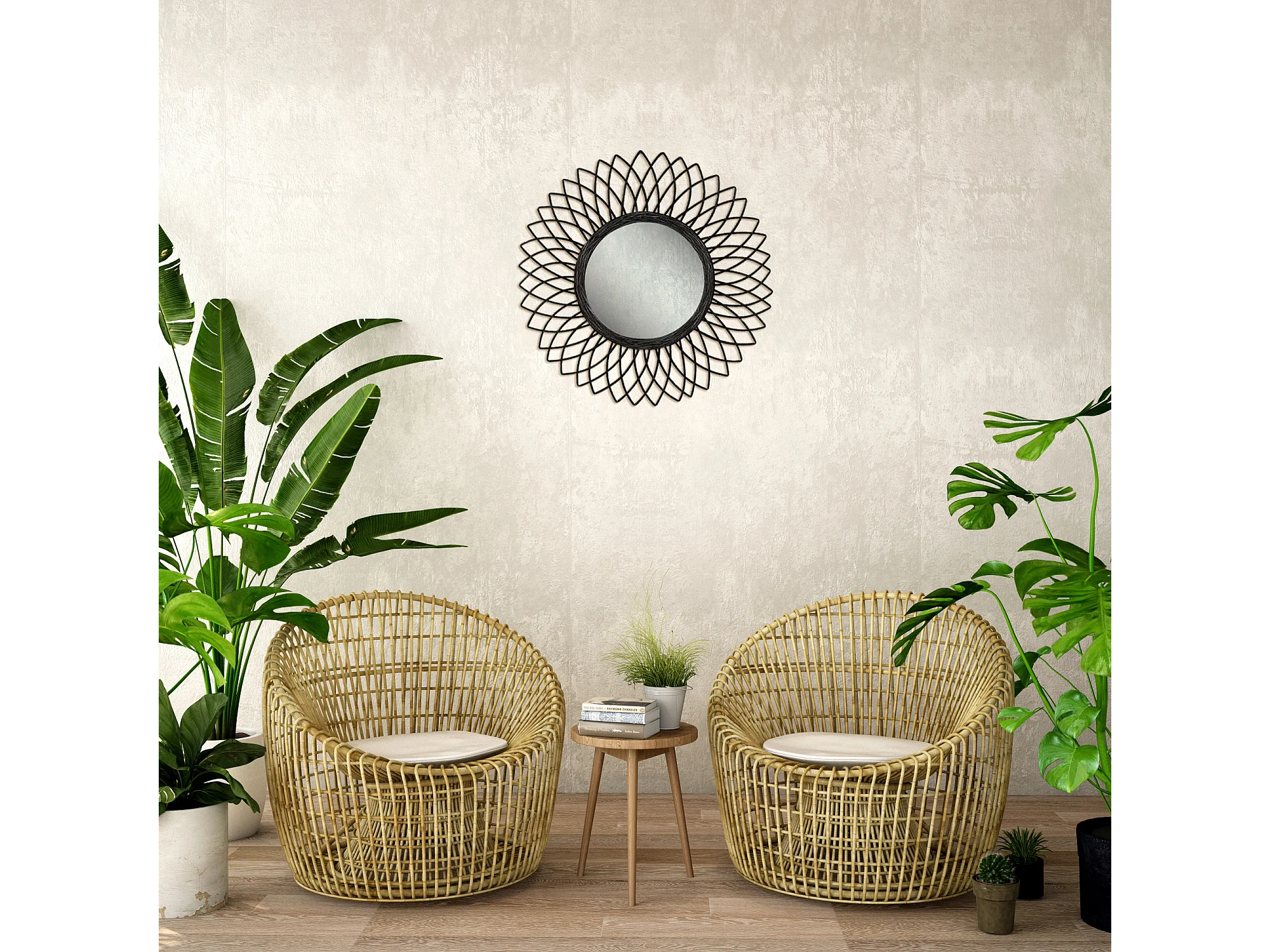 Miroir fleur en rotin noir 61cm