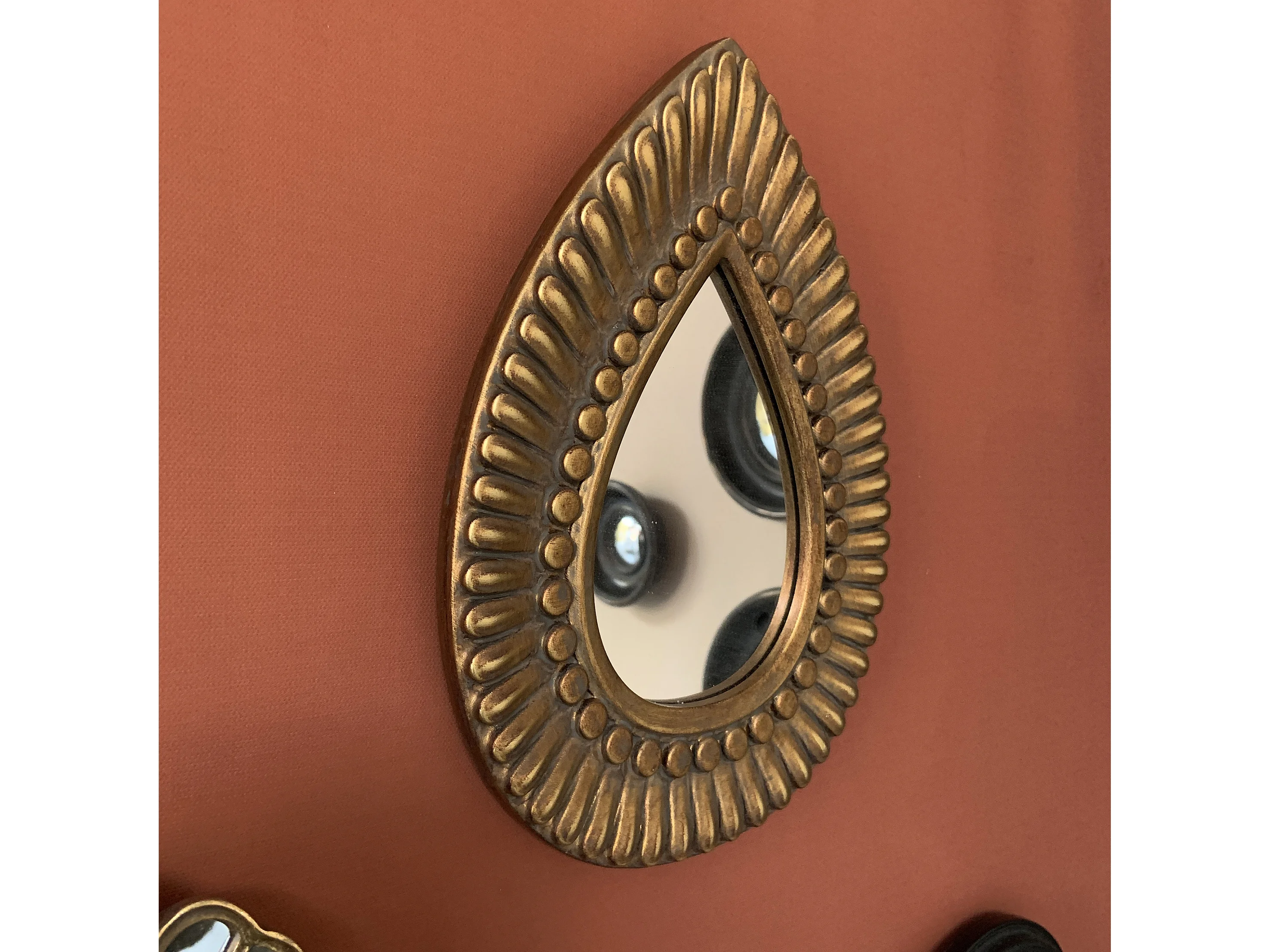 Miroir goutte doré motifs 19,7x27cm