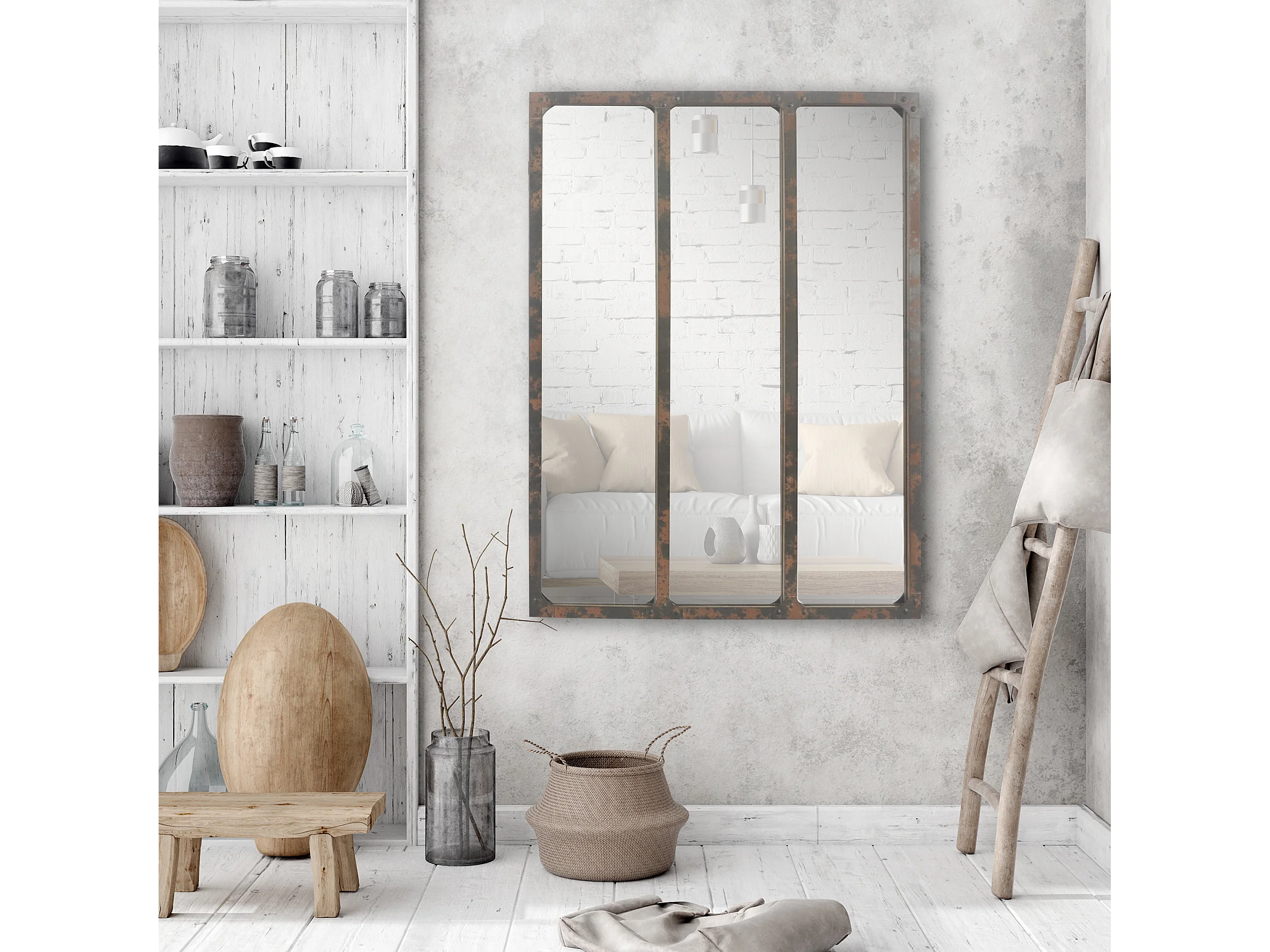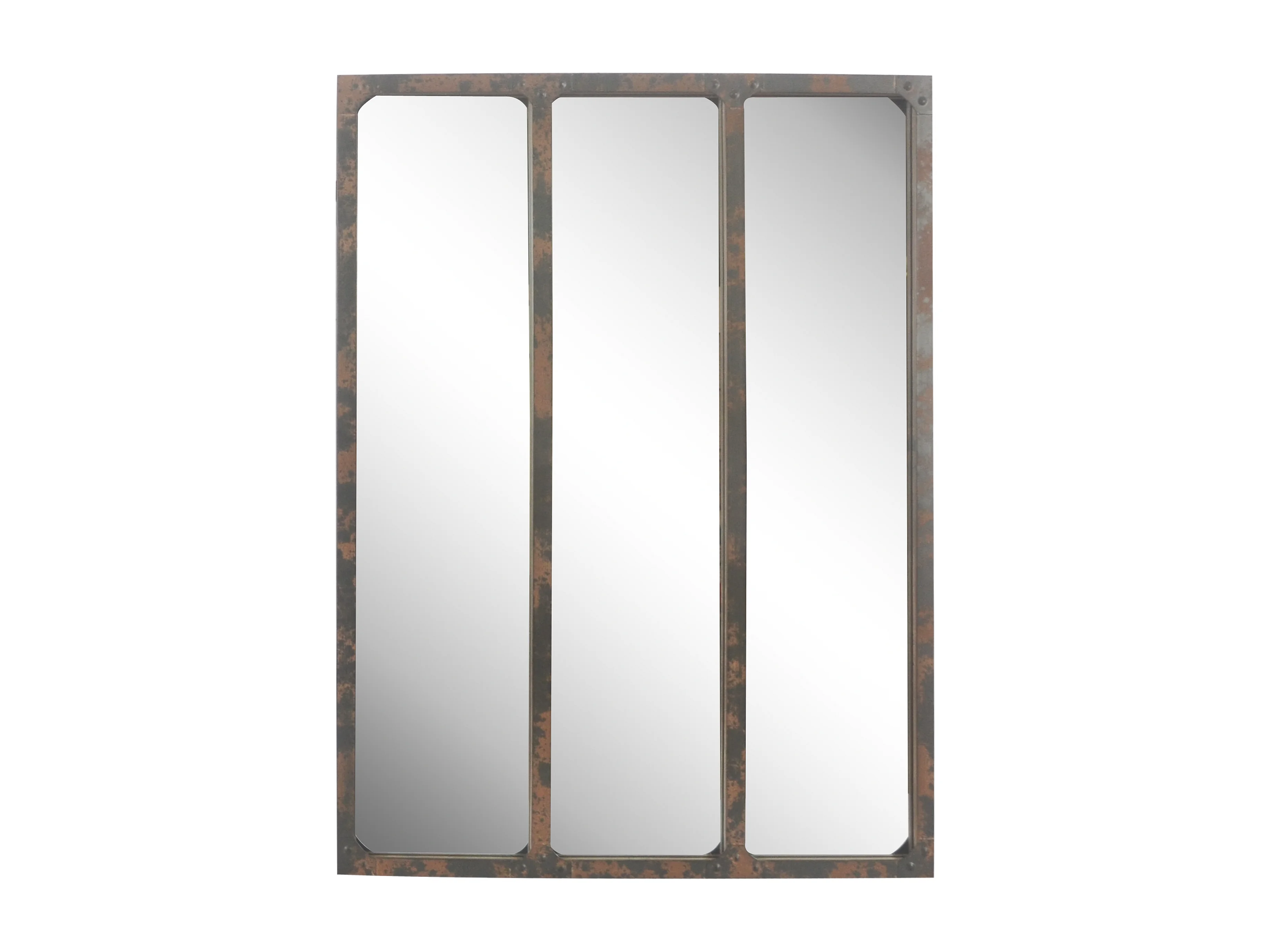 Miroir industriel 3 bandes effet rouillé avec rivets 60x80cm