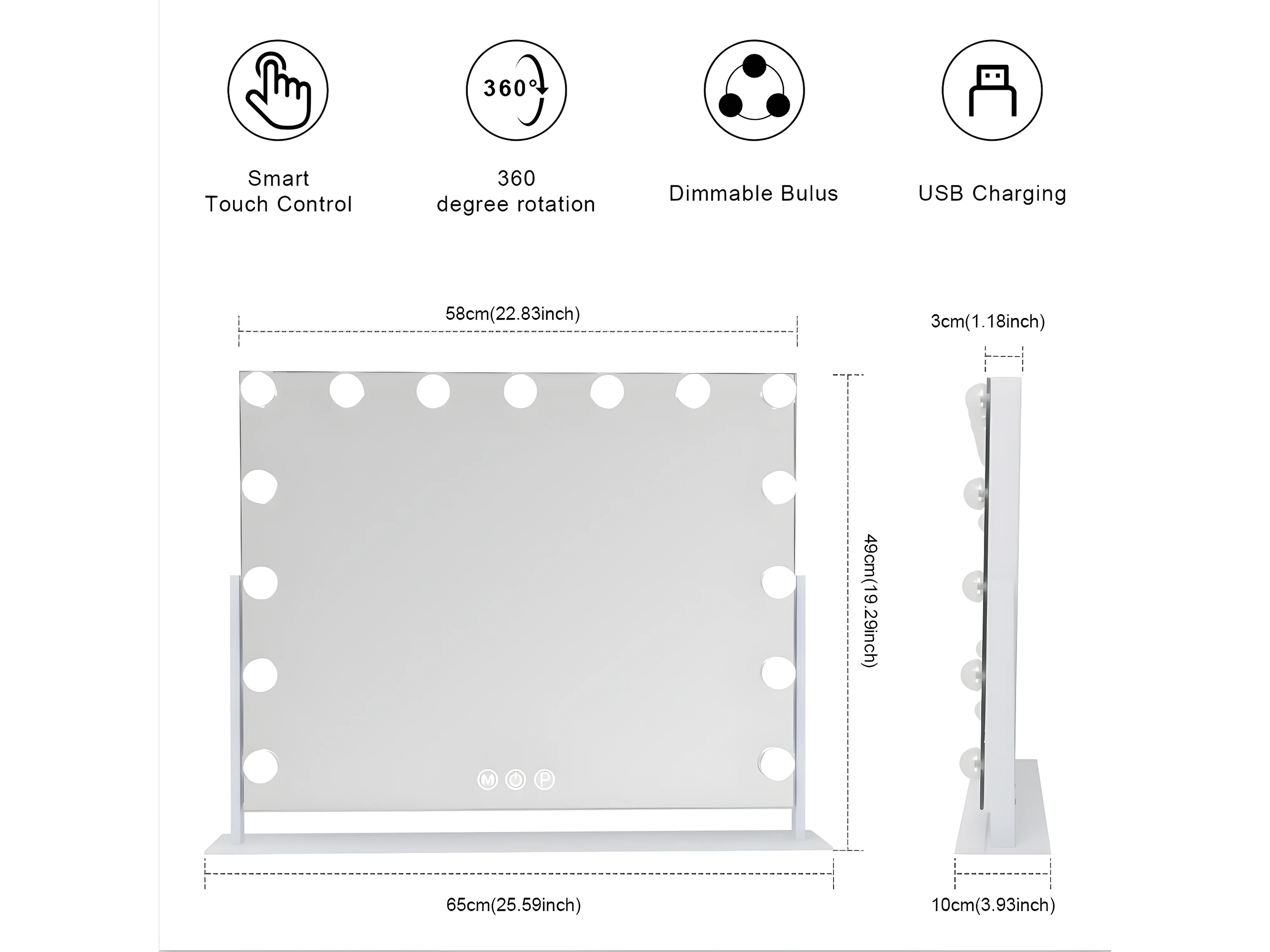 Miroir de maquillage hollywood coiffeuse mural avec lumière 58x46cm