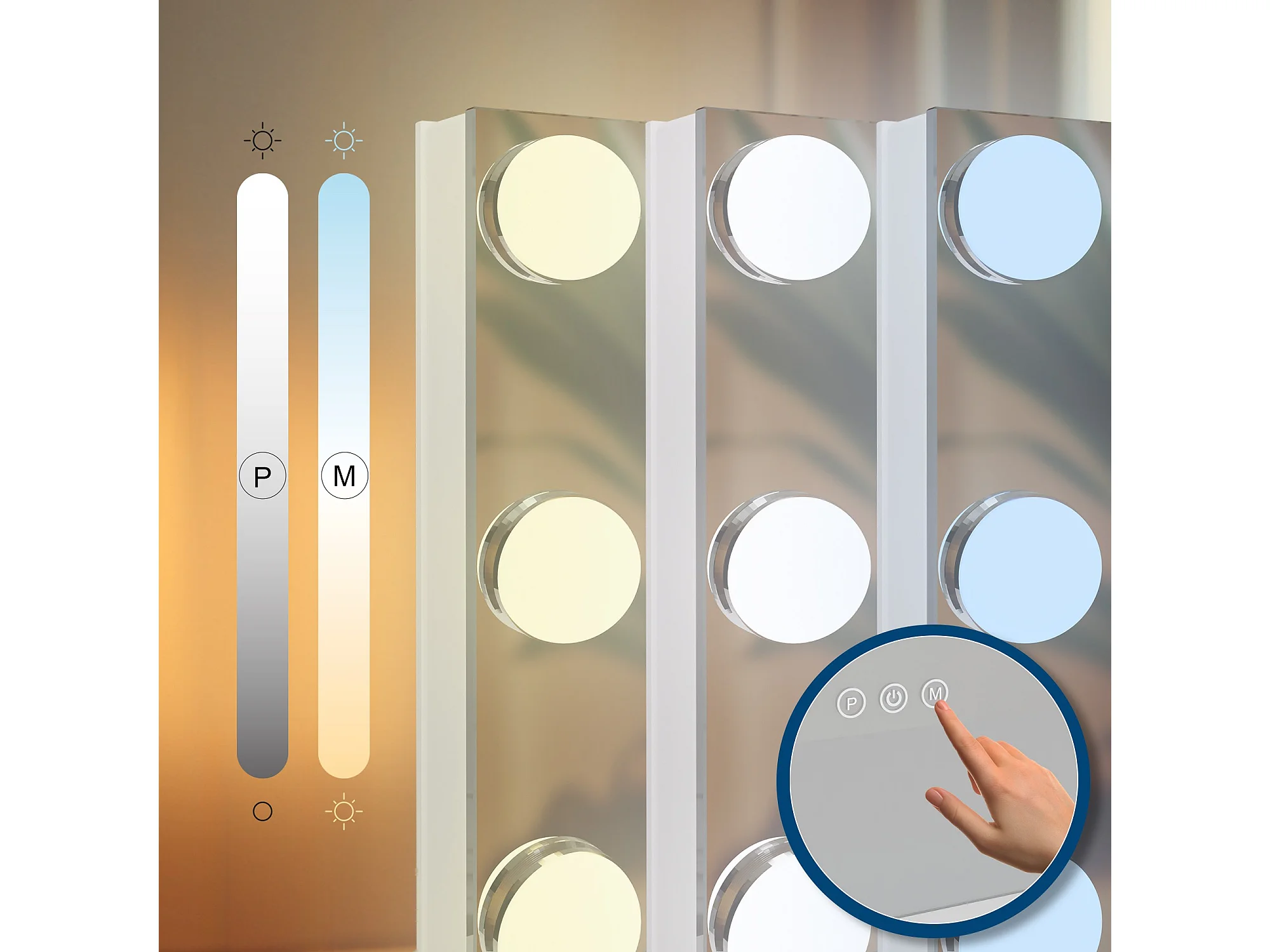 Miroir de Maquillage, SucceBuy Miroir de Maquillage Éclairé - 3 Couleurs, USB, 80 × 55 cm, Blanc