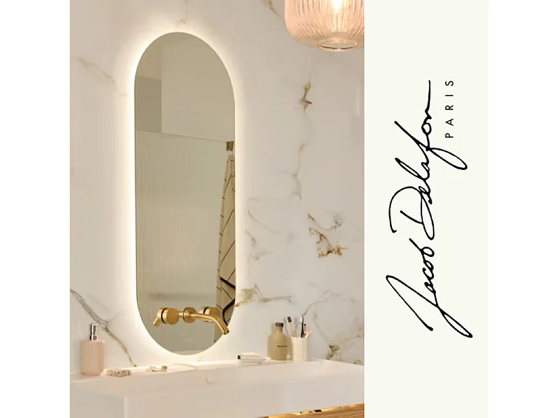 Miroir LED ovale 3 trous + mitigeur lavabo encastré 3 trous JACOB DELAFON Grands Boulevards laiton brossé