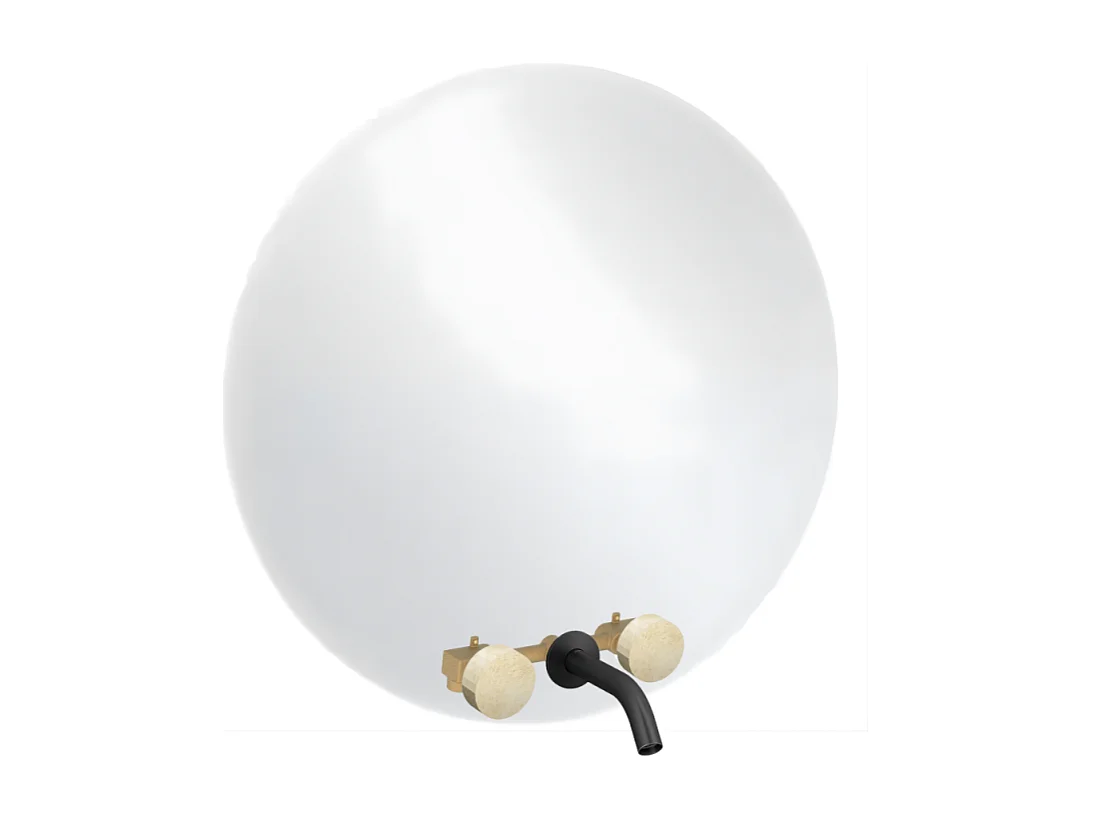 Miroir LED rond 3 trous + mélangeur lavabo encastré 3 trous JACOB DELAFON Grands Boulevards marbré travertin sable et noir