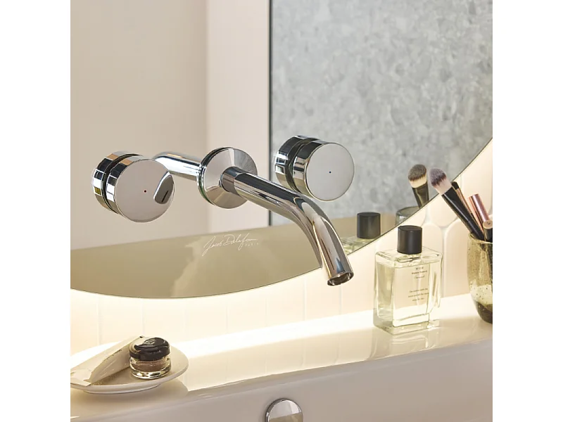 Miroir LED rond 3 trous + mitigeur lavabo encastré 3 trous JACOB DELAFON Grands Boulevards chrome