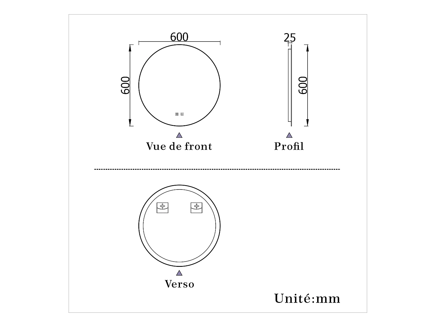 AICA LED Miroir lumineux rond 60cm 3 couleurs + anti-buée + dimmable + mémoire miroir salle de bain