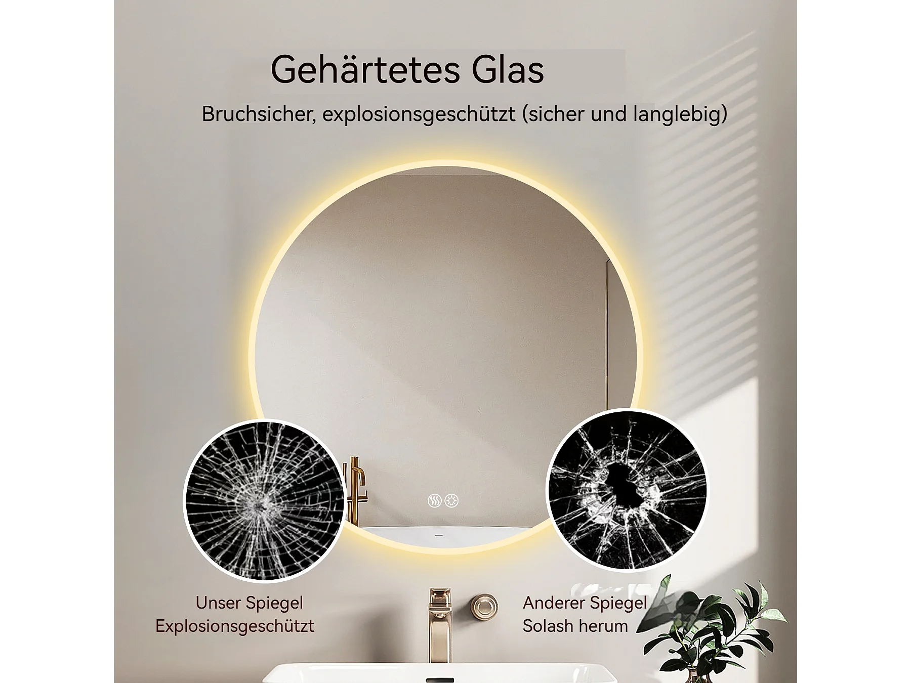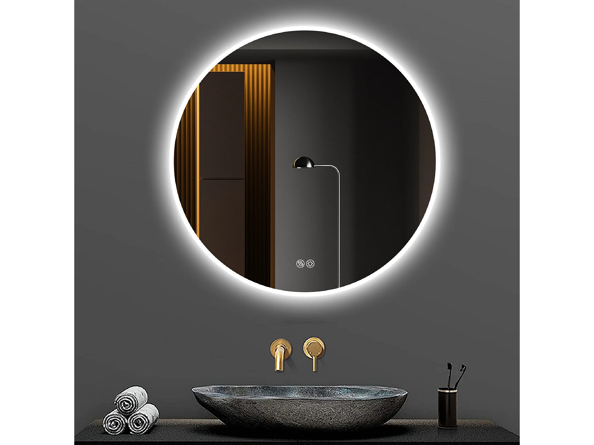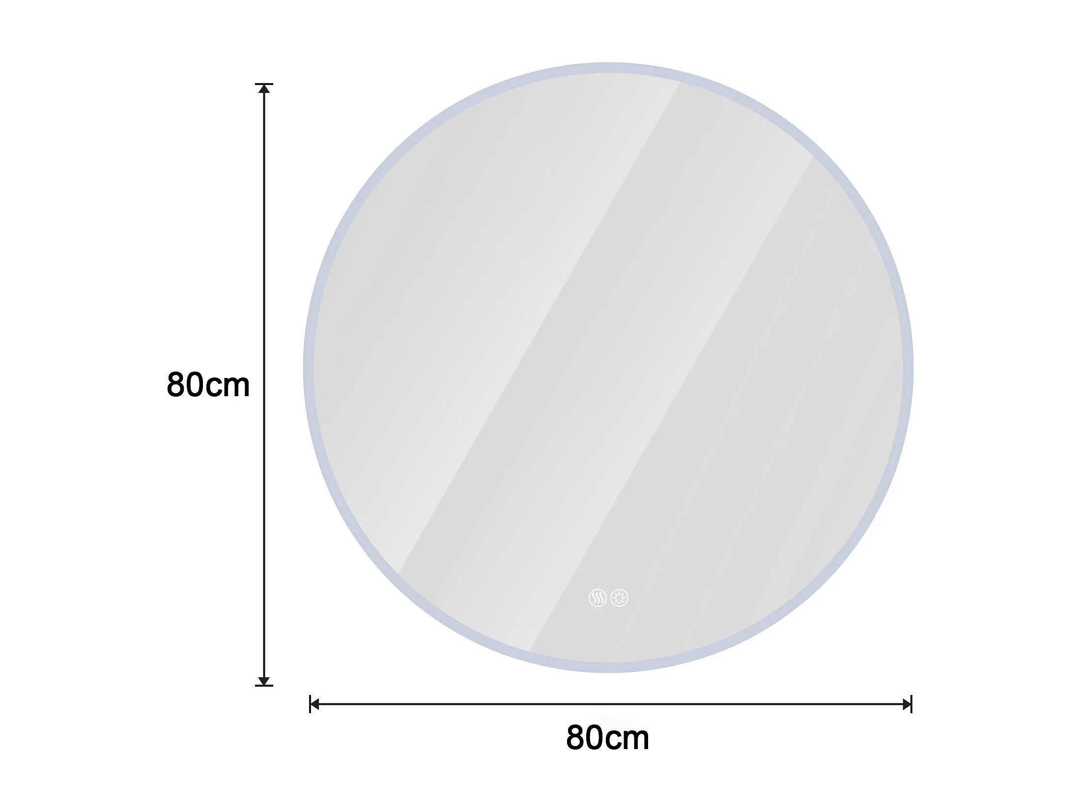 Miroir LED rond 80 cm avec anti-buée et 3 températures - Verre et métal argenté
