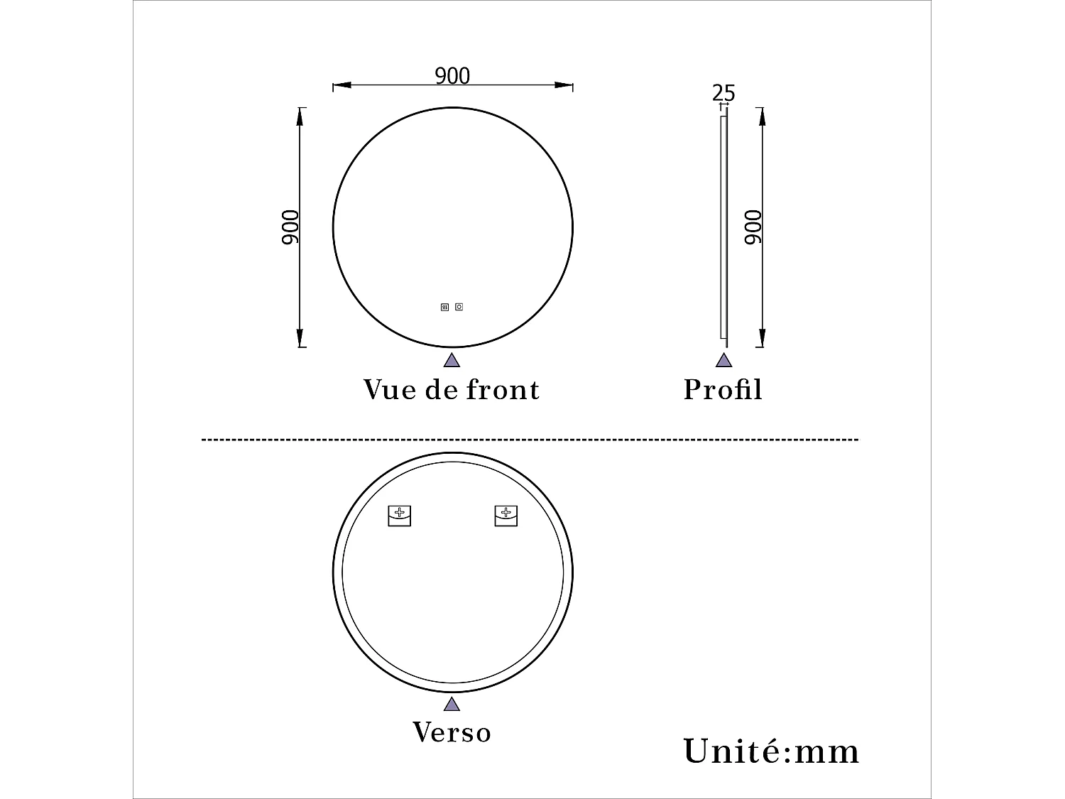 AICA LED Miroir lumineux rond 90cm 3 couleurs + anti-buée + dimmable + mémoire miroir salle de bain