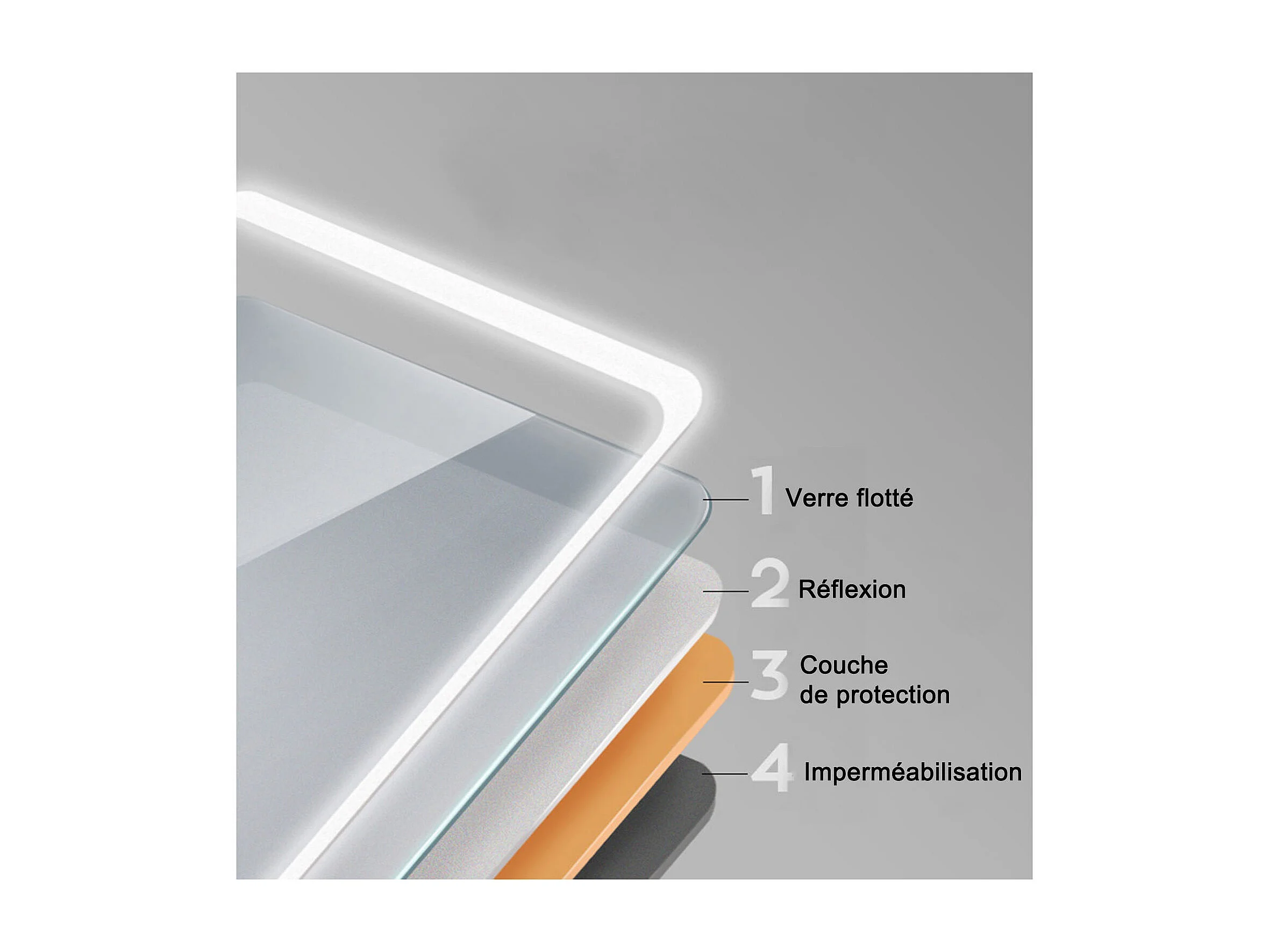 Miroir lumineux l.160 x H.70cm avec Anti-buée, Mural Miroir salle de bain - Aica