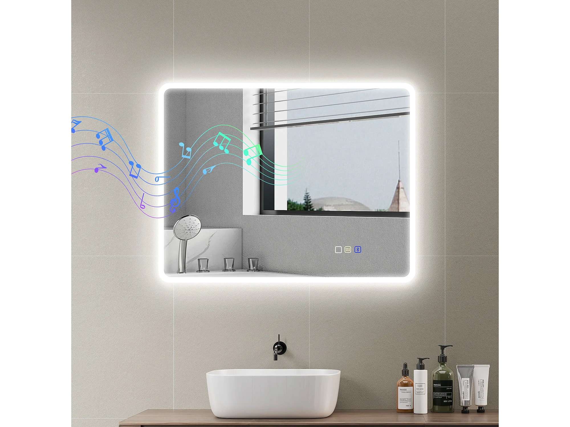 Miroir lumineux LED salle de bain 50 x 70 cm bluetooth interrupteur tactile lumière réglable 3 couleurs fonction anti-buée et mémoire