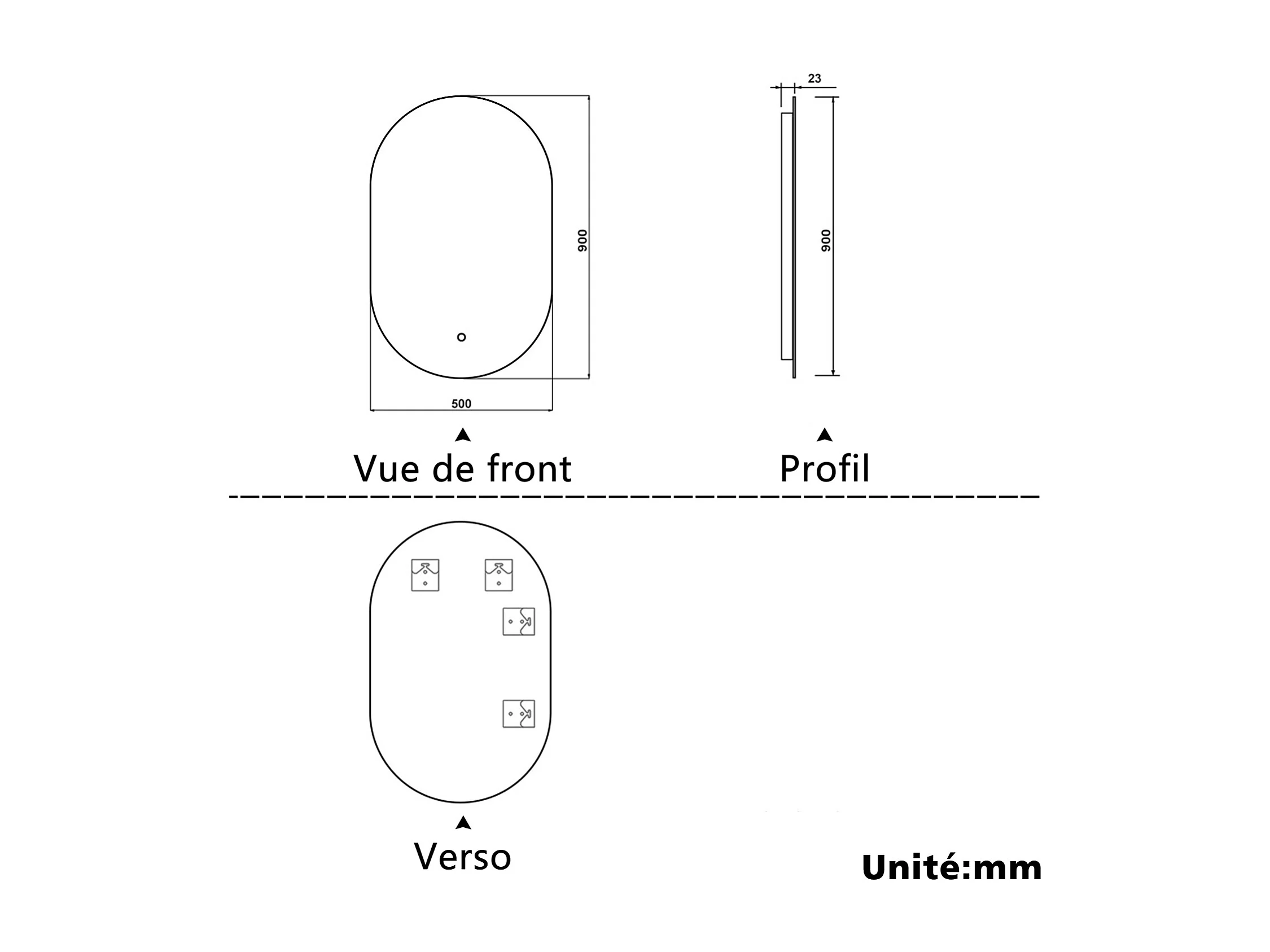 Miroir lumineux Ovale 50x90cm avec Dimmable, Miroir salle de bain IP44 HD Verre
