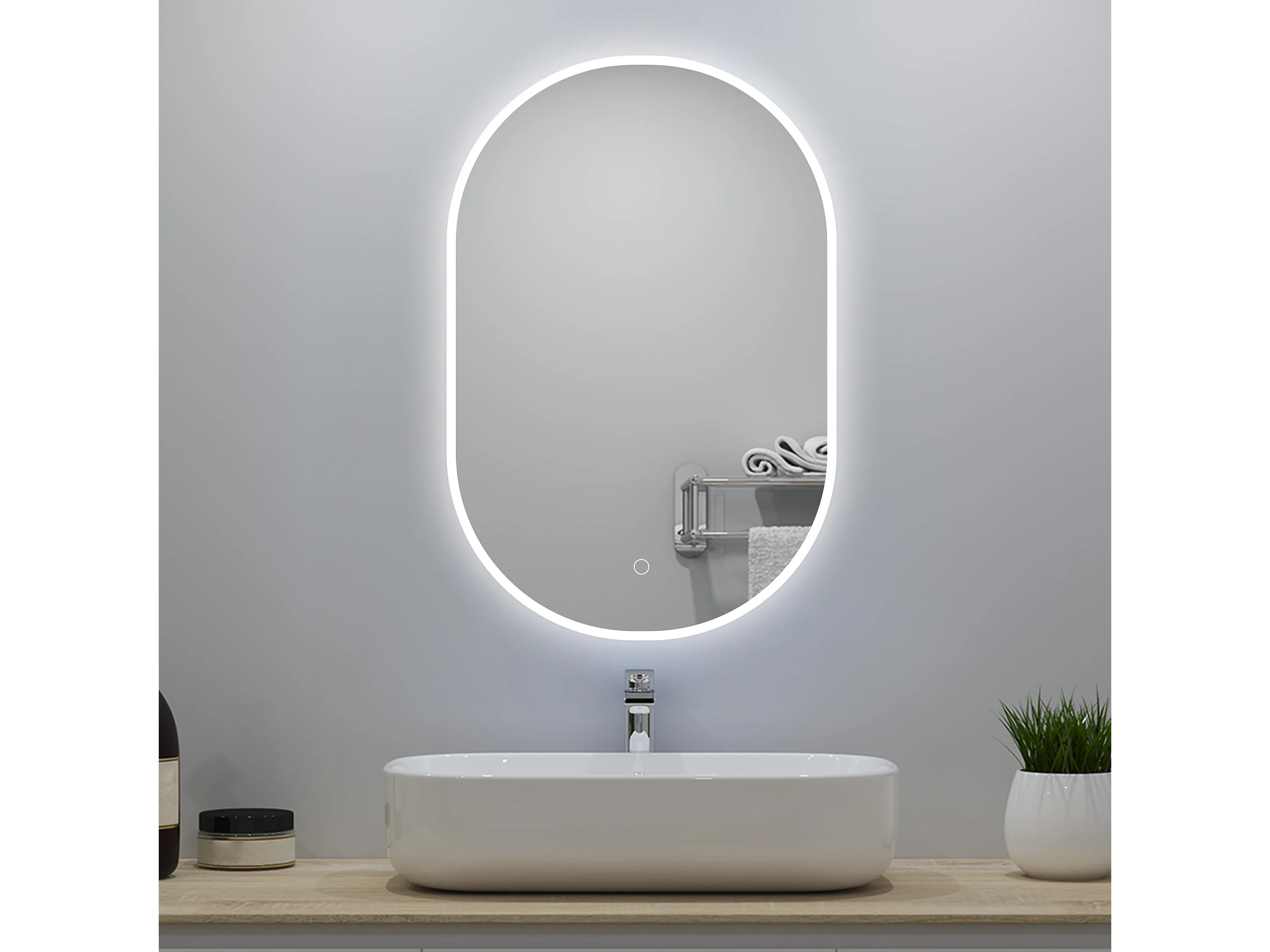 Miroir lumineux ovale l.50 x H.90cm avec Anti-buée + Dimmable, Mural Miroir salle de bain