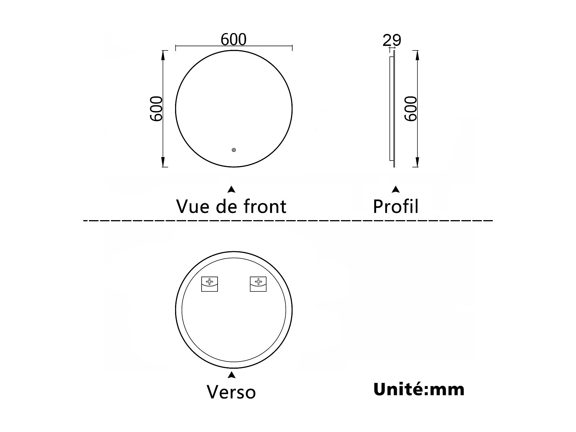 Miroir lumineux Rond 60cm avec Dimmable, Miroir salle de bain IP44 HD Verre