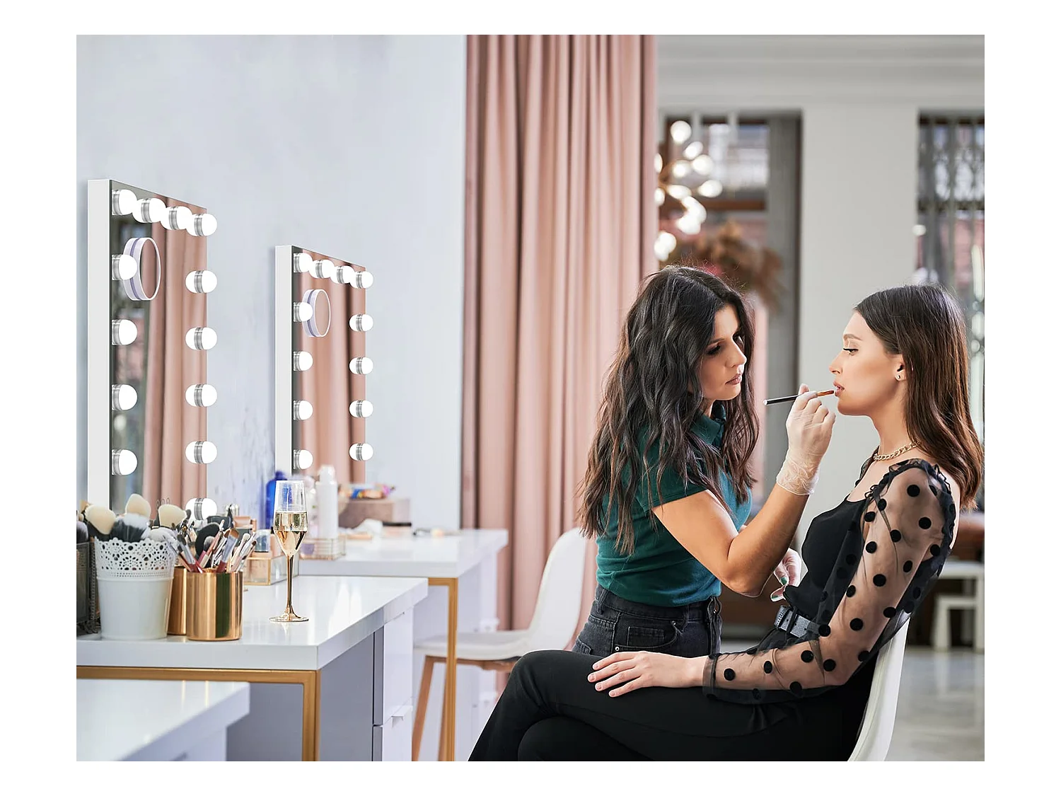 Miroir Maquillage LED 14 Lumières 40x52cm, Hollywood, 3 Modes, Luminosité Réglable, Contrôle Tactile, Mur ou Table, Blanc