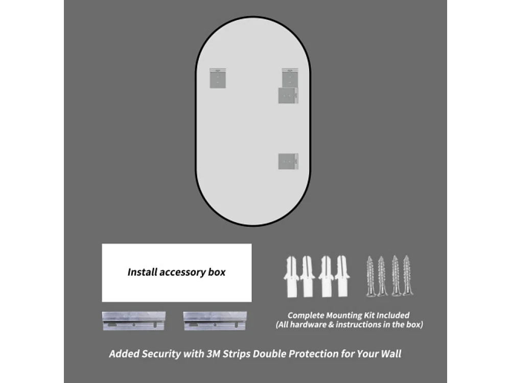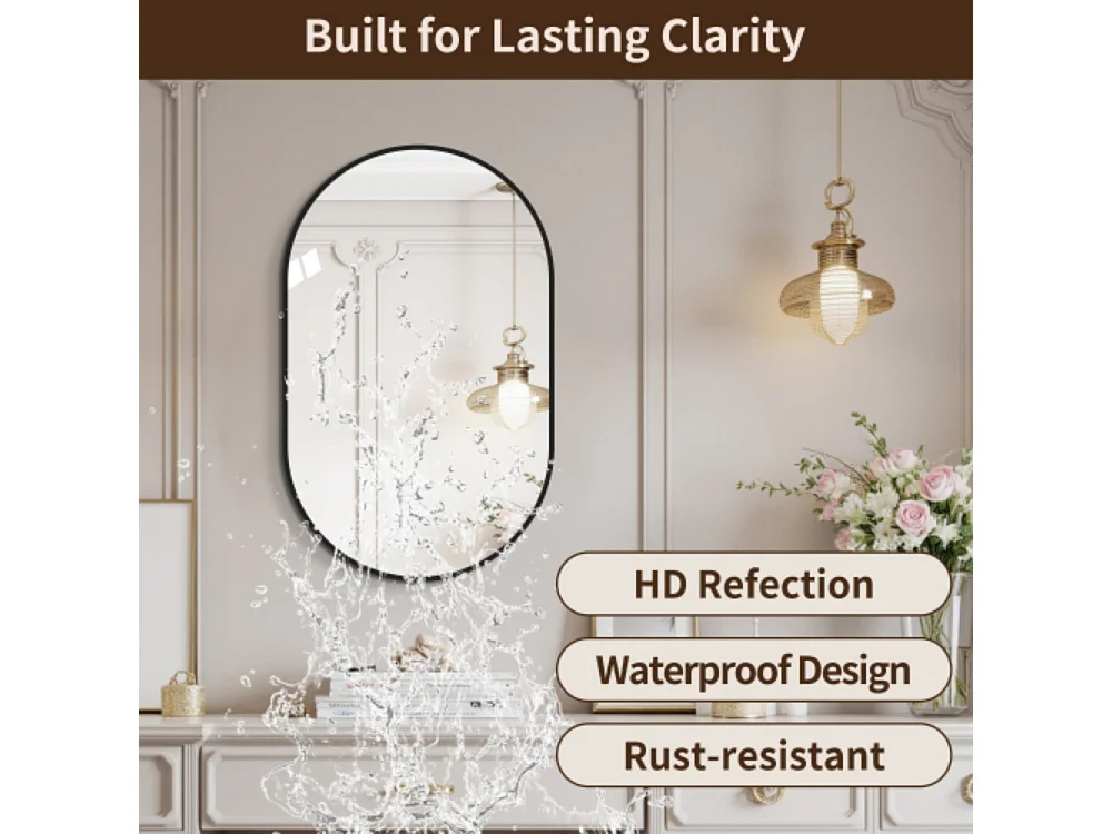 Miroir mural arqué 60×90 cm avec cadre en aluminium noir – Miroir argenté HD sans cuivre