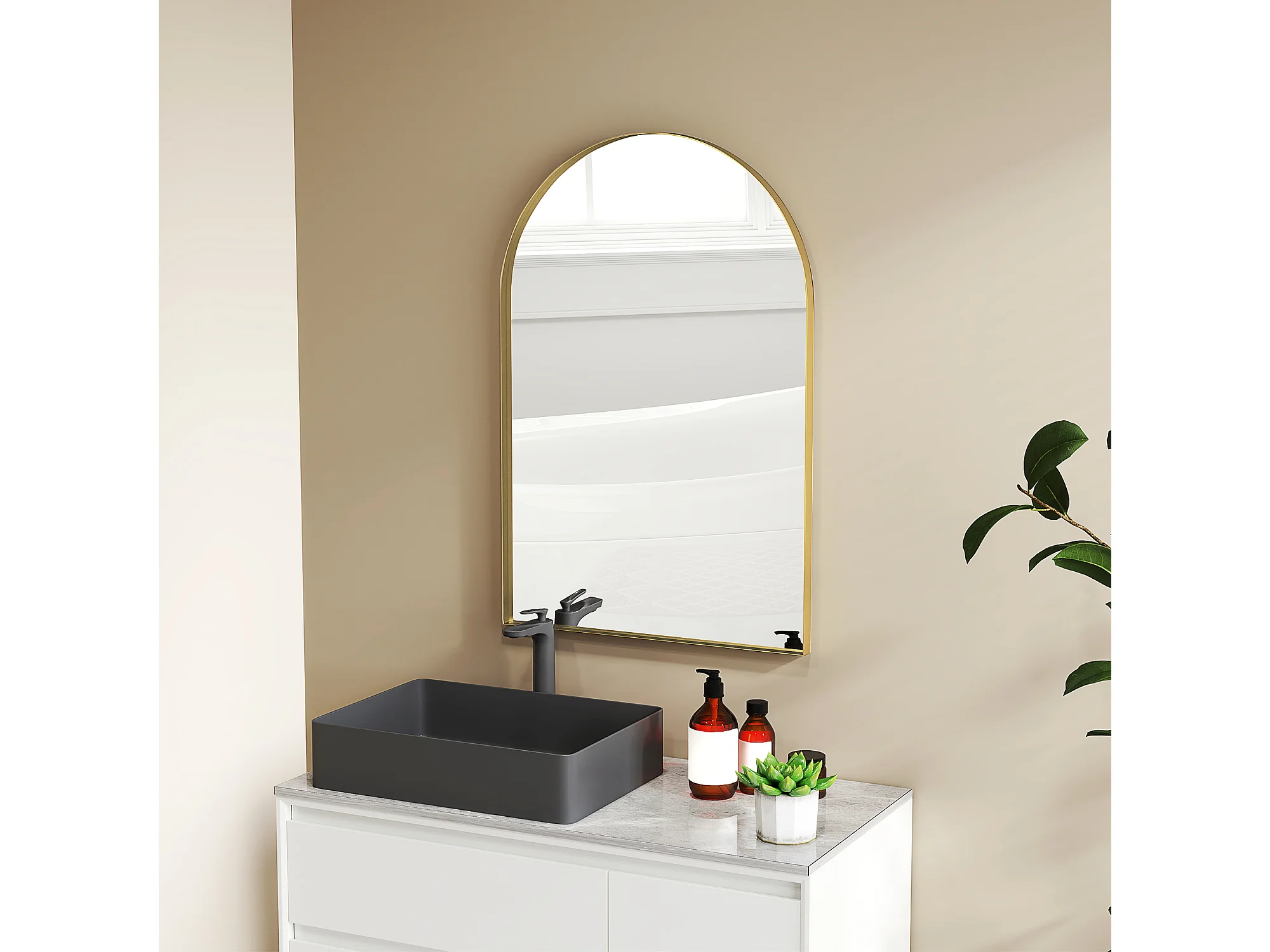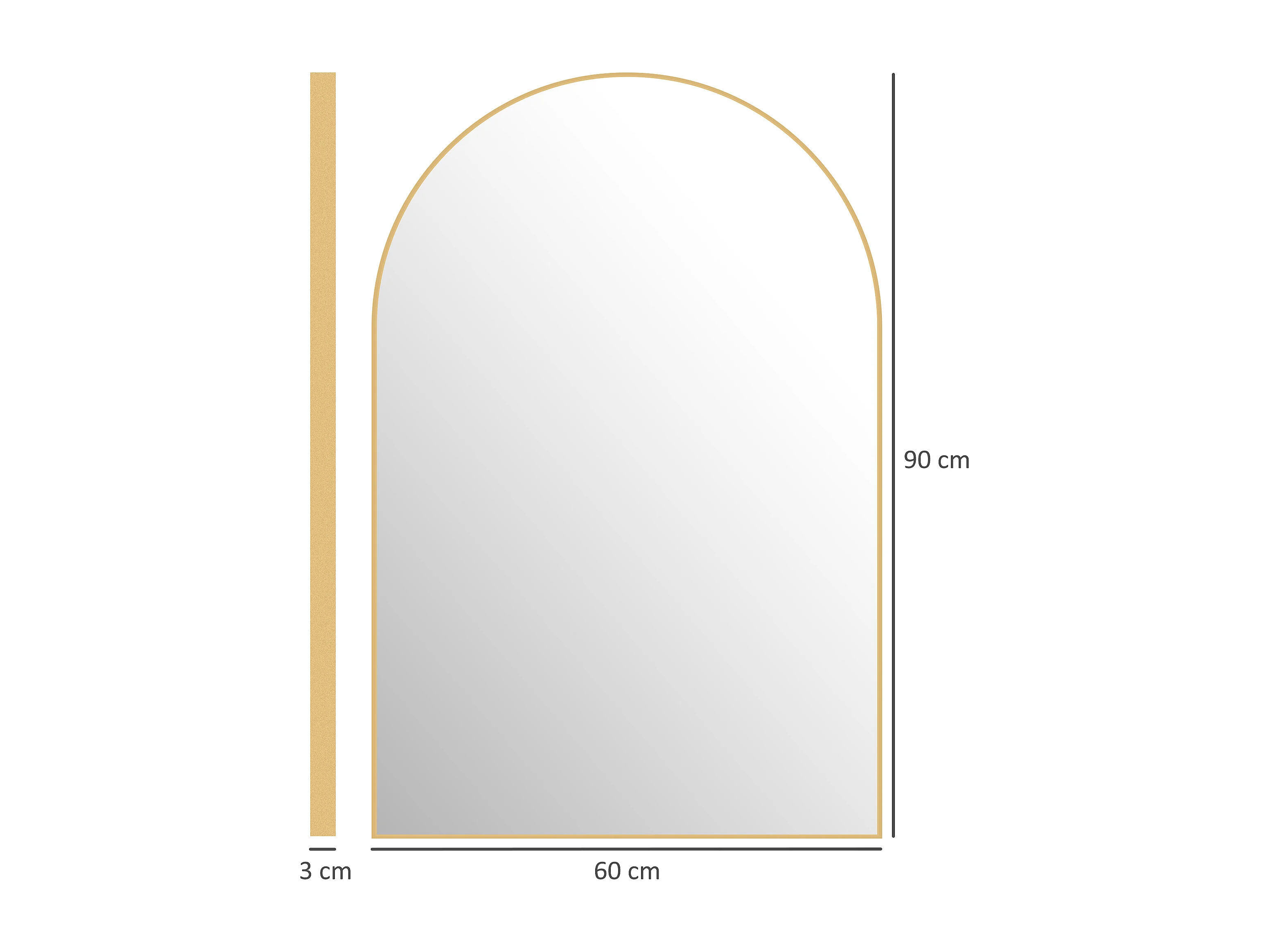 Miroir mural arqué 60 x 90 cm haute définition cadre alliage aluminium doré