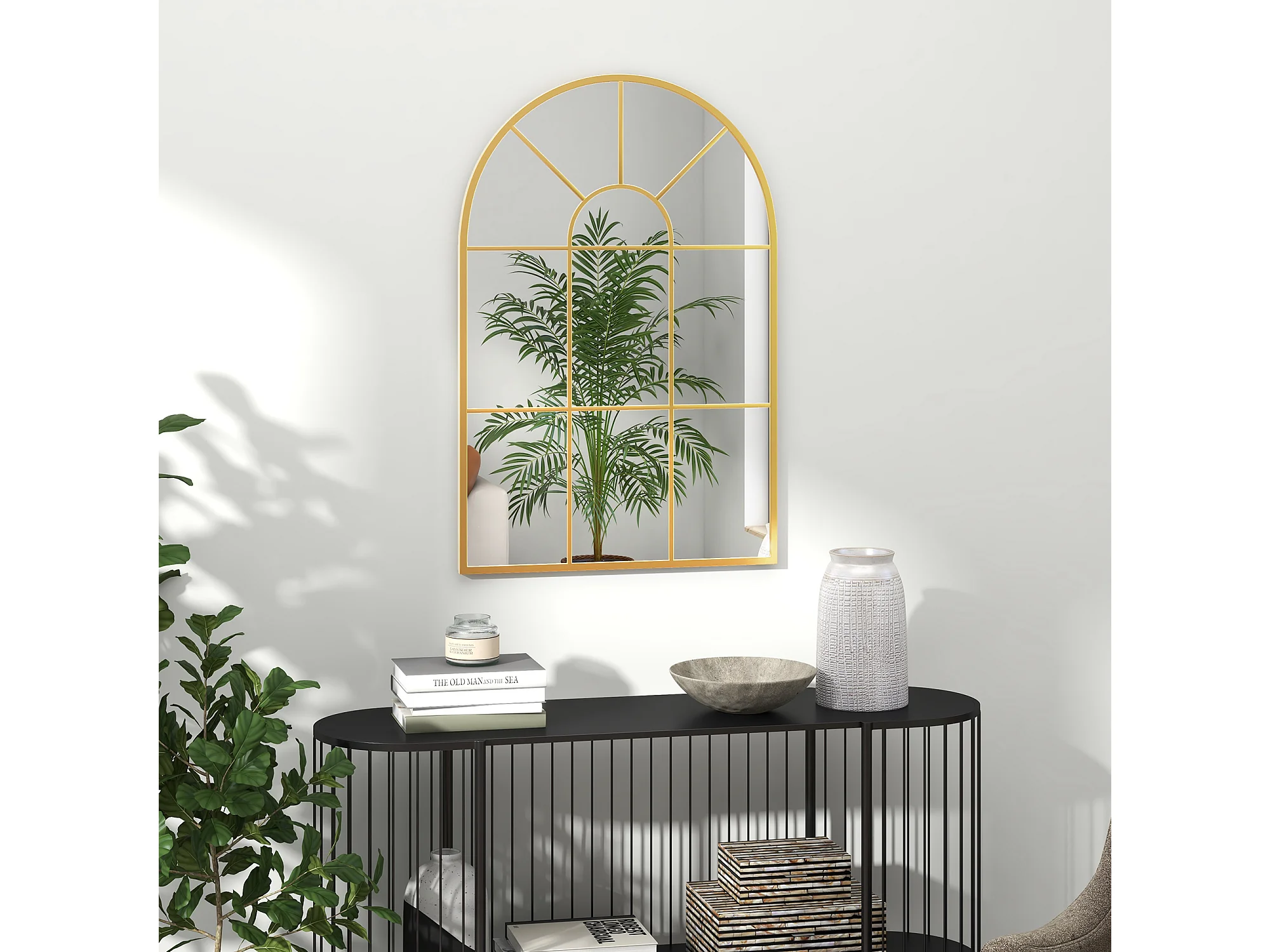 Miroir mural aspect verrière style classique chic - dim. 60L x 90H cm - métal doré verre 3 mm