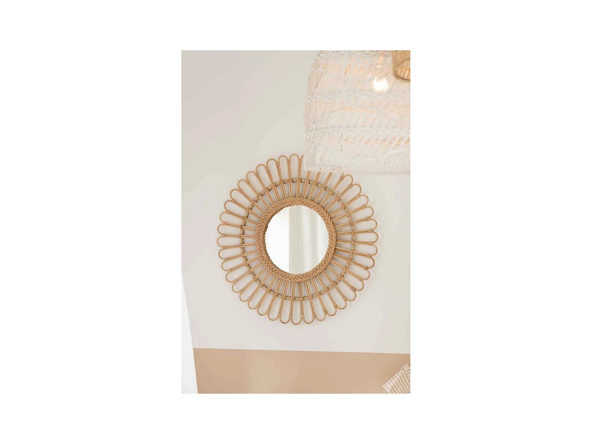 Miroir mural en rotin D 38 cm pour chambre d'enfant