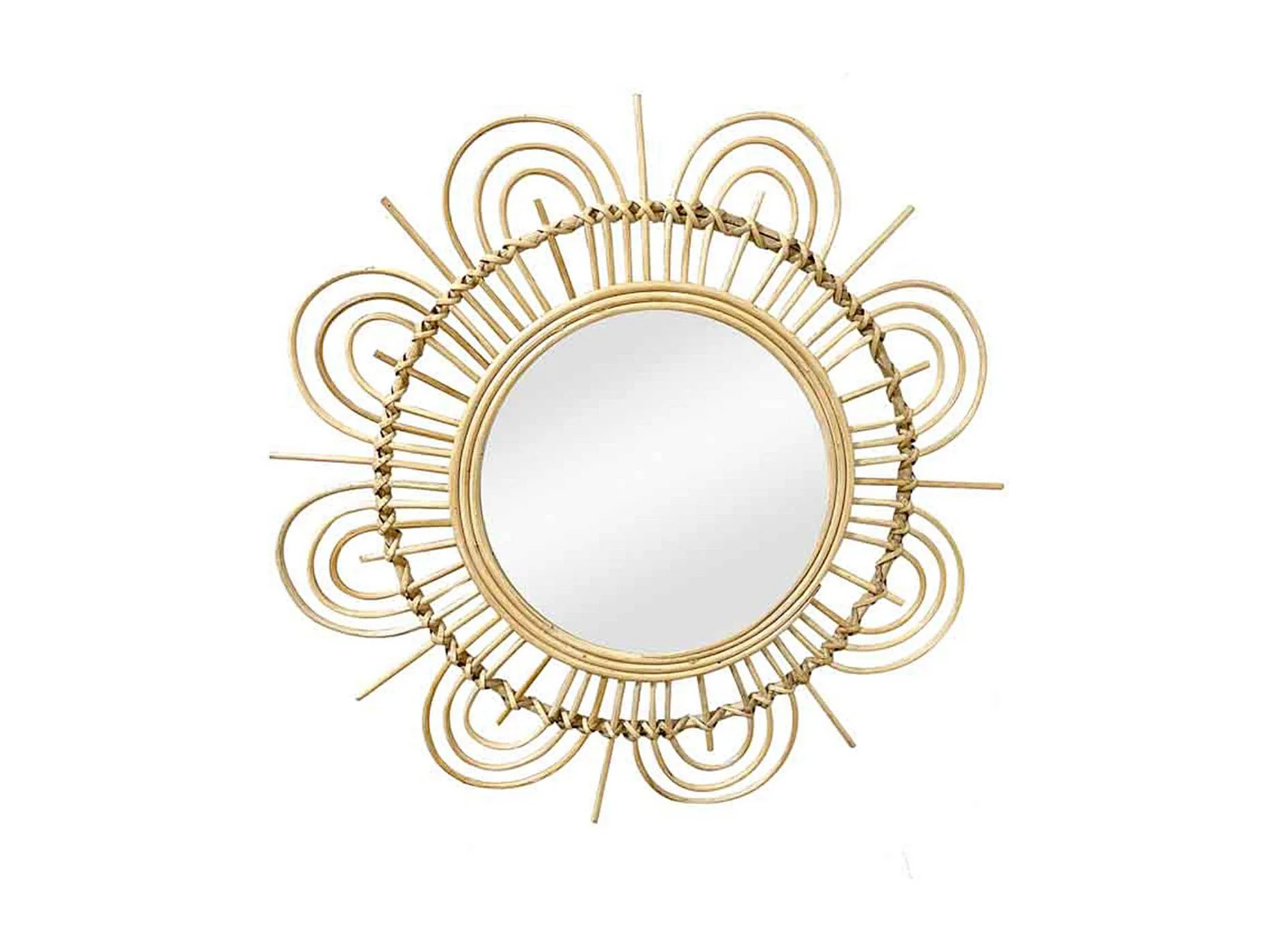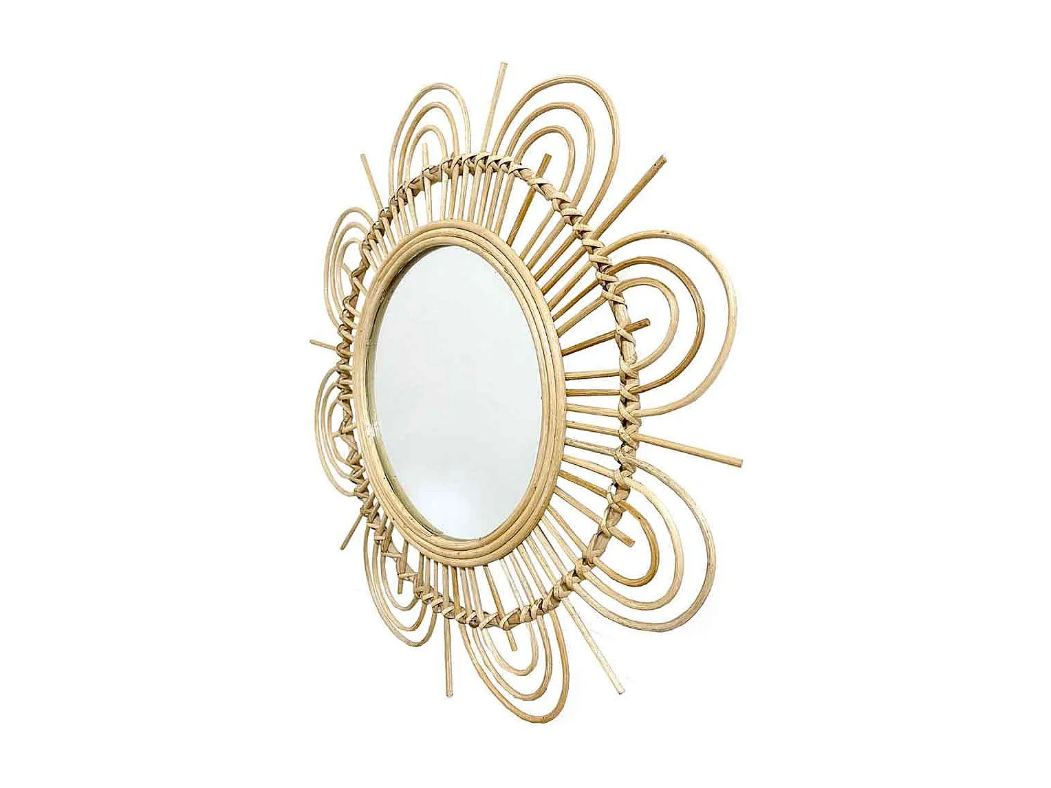 Miroir mural Fleur en Rotin D 56 cm